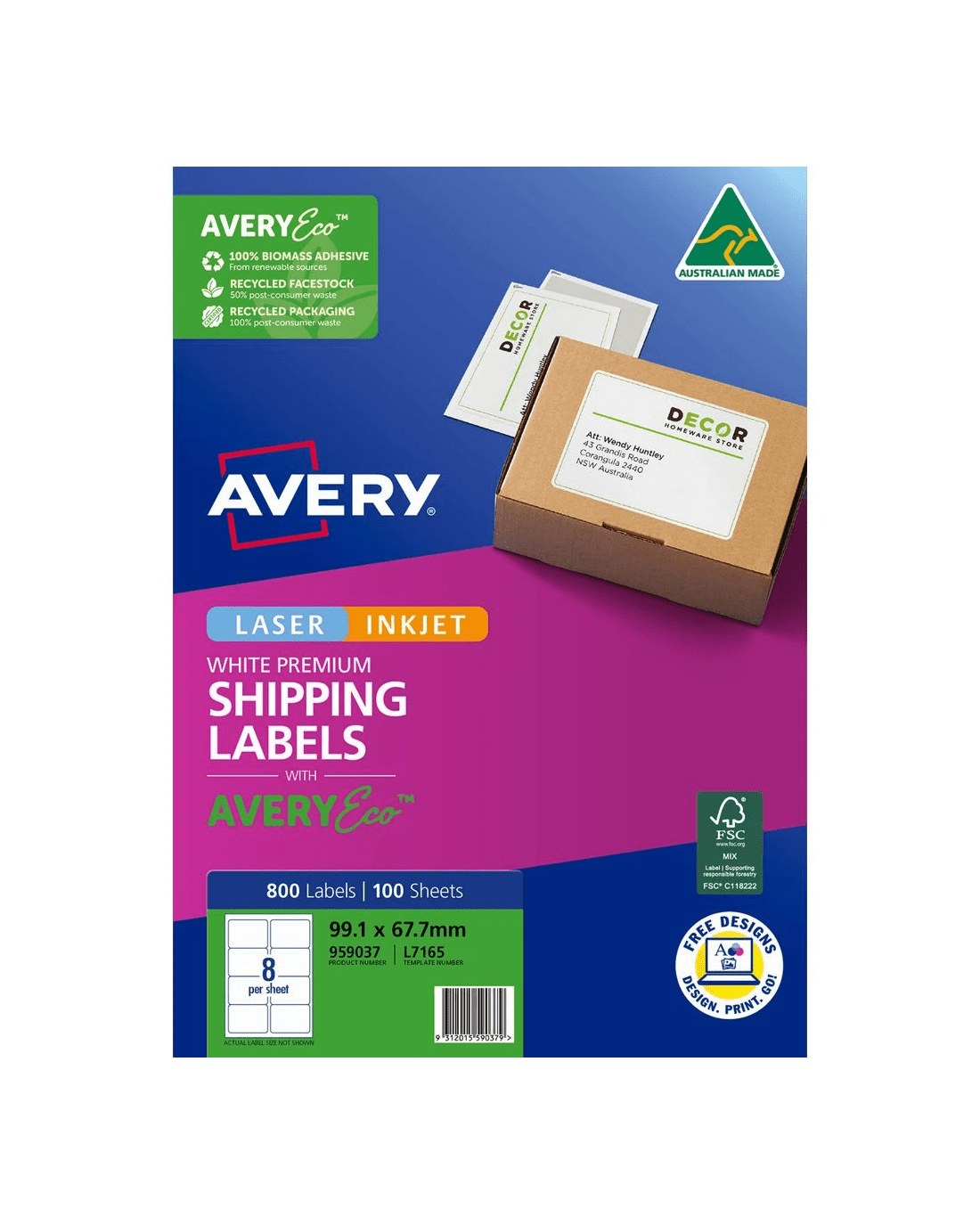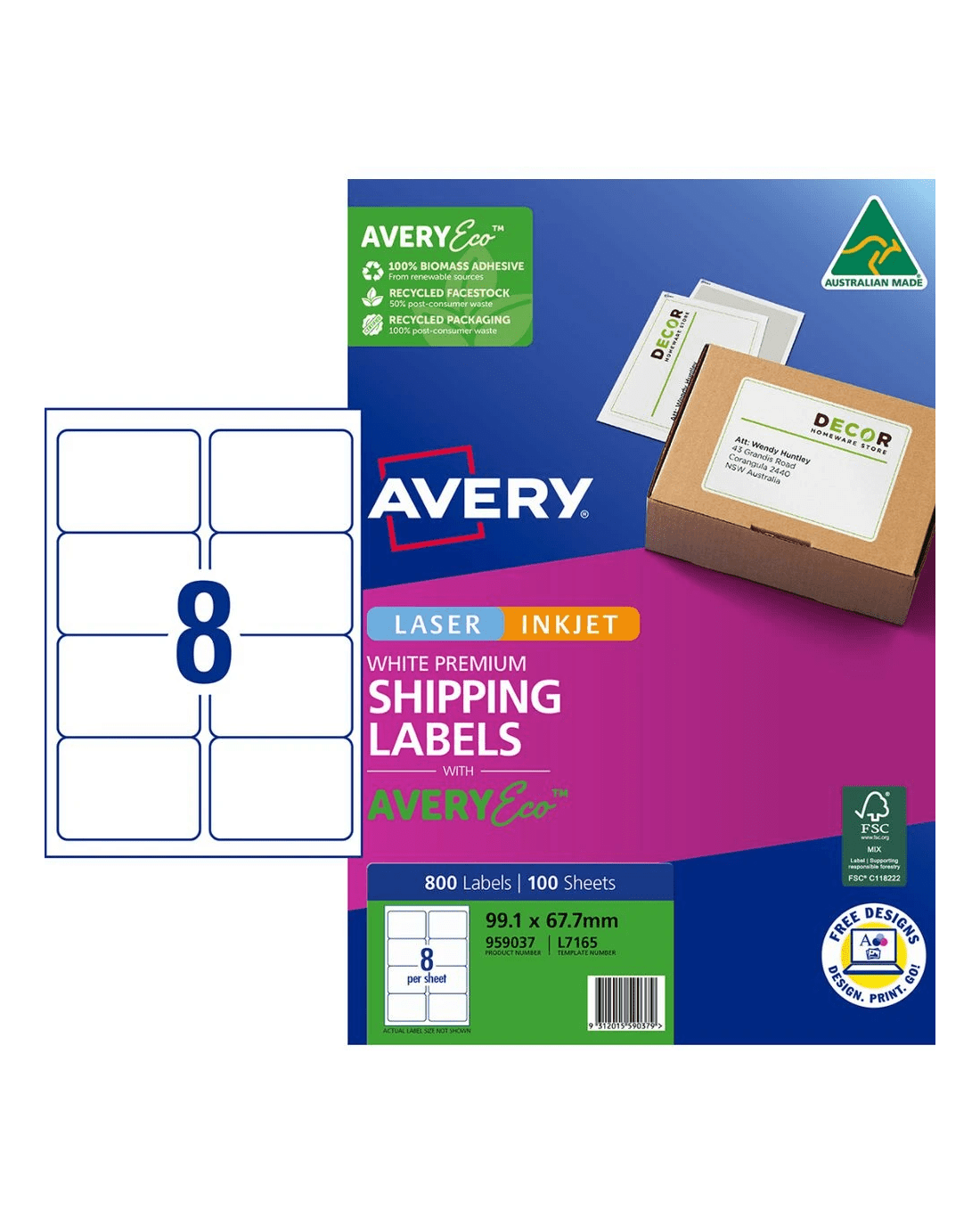Sold by OfficeworksAvery Premium White Shipping Labels AveryEco 8UP 100 Sheets