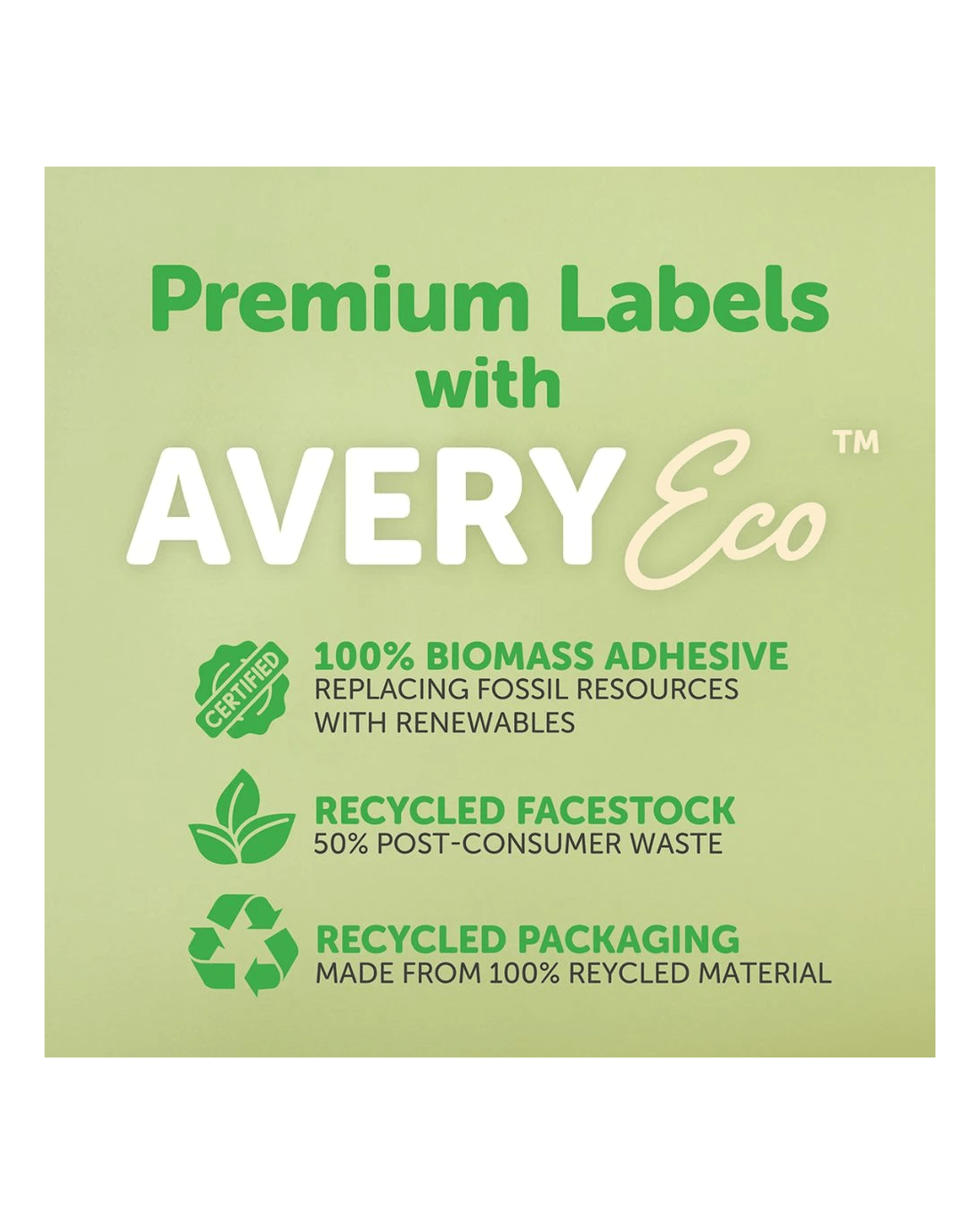 - Avery Premium blank matt white labels with AveryEco™, embracing sustainability whilst not compromising on quality.