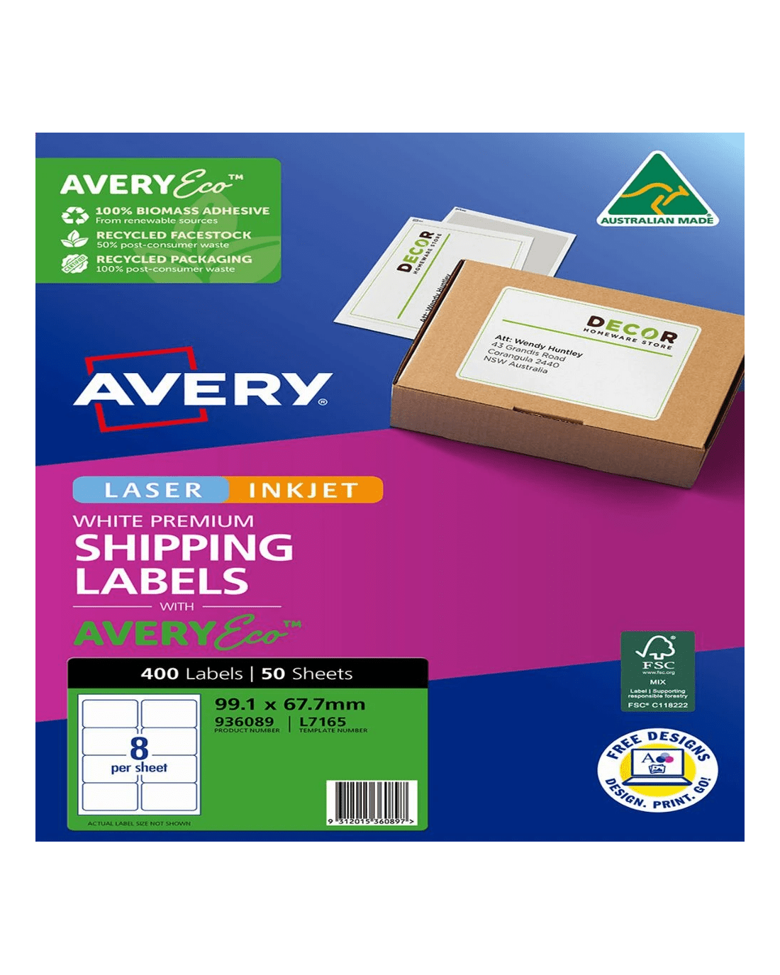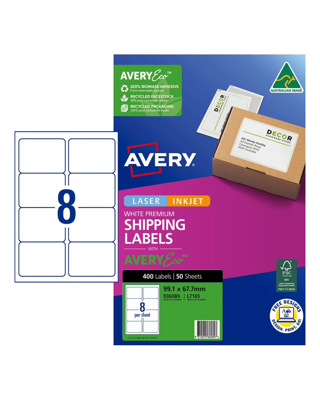 Avery Premium White Shipping Labels AveryEco 8UP 50 Sheets