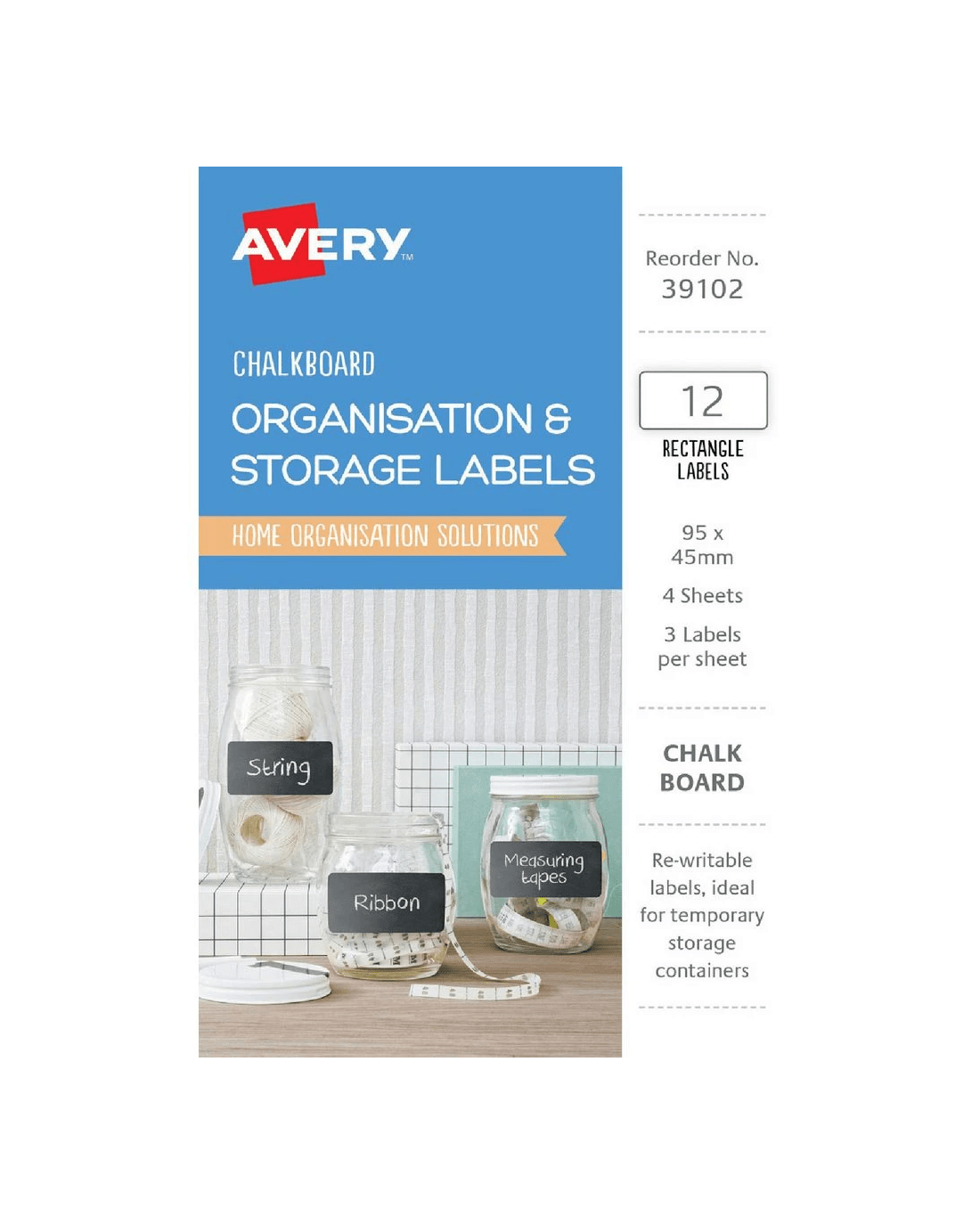 These Avery Rectangle Chalkboard Labels are perfect for labelling containers around your home or workspace. The chalkboard surface allows you to easily change what's written on the label, making it ideal for containers with frequently changing contents.