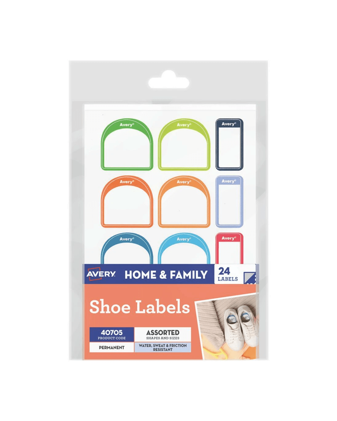 Avery Shoe Labels make it easy to identify shoes and help prevent mix‑ups at school, daycare or sports activities. Designed to be durable and long lasting, they resist water, sweat and everyday friction. Simply write on the label with a permanent marker to clearly mark shoes and ensure lost items find their way home.