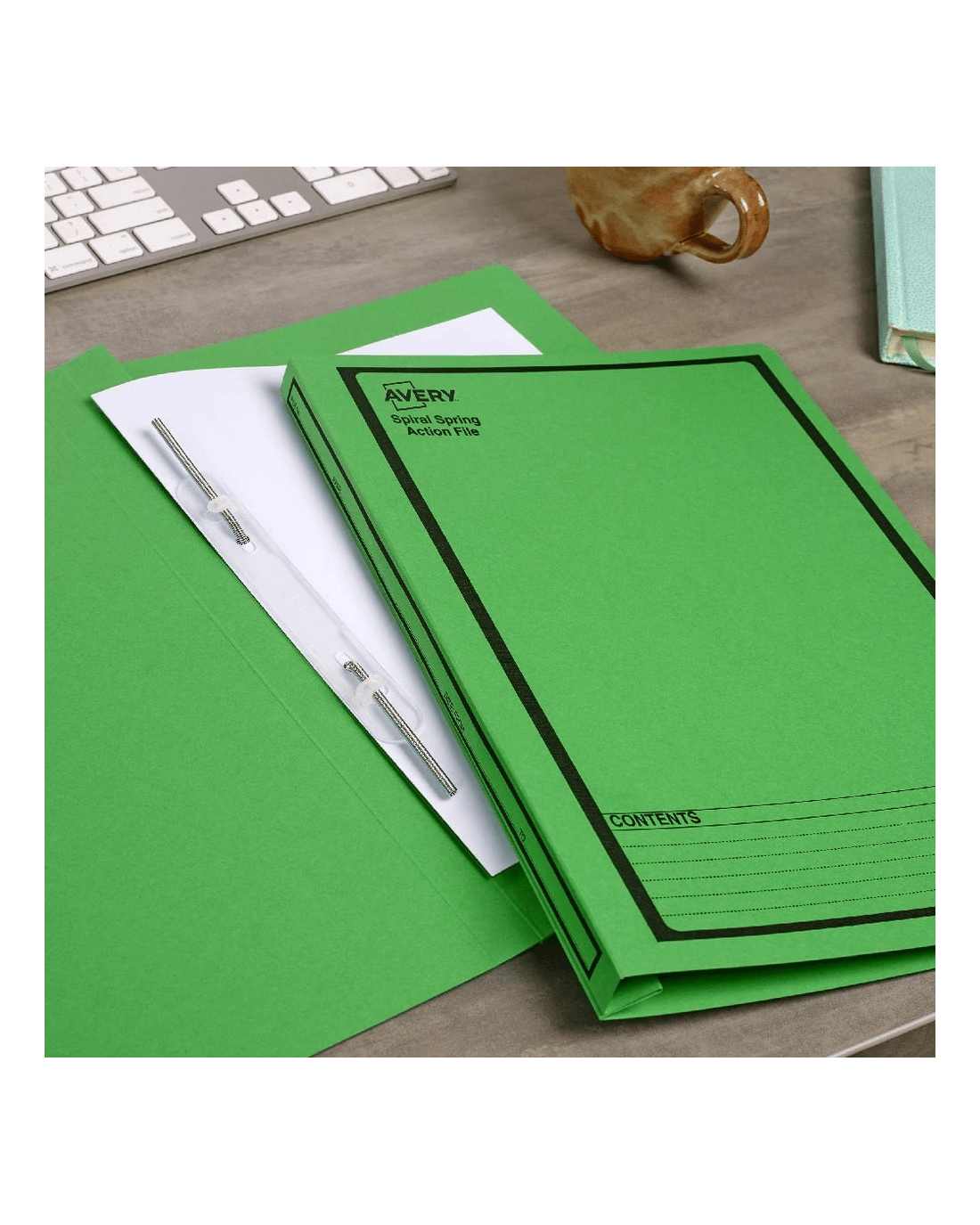 Avery Spiral Spring Action Files are made out of heavy weight board to ensure that your documents are well protected. The built-in spiral spring coil fastener securely holds papers up to foolscap size and ensures that your files are held in place while you're out and about.