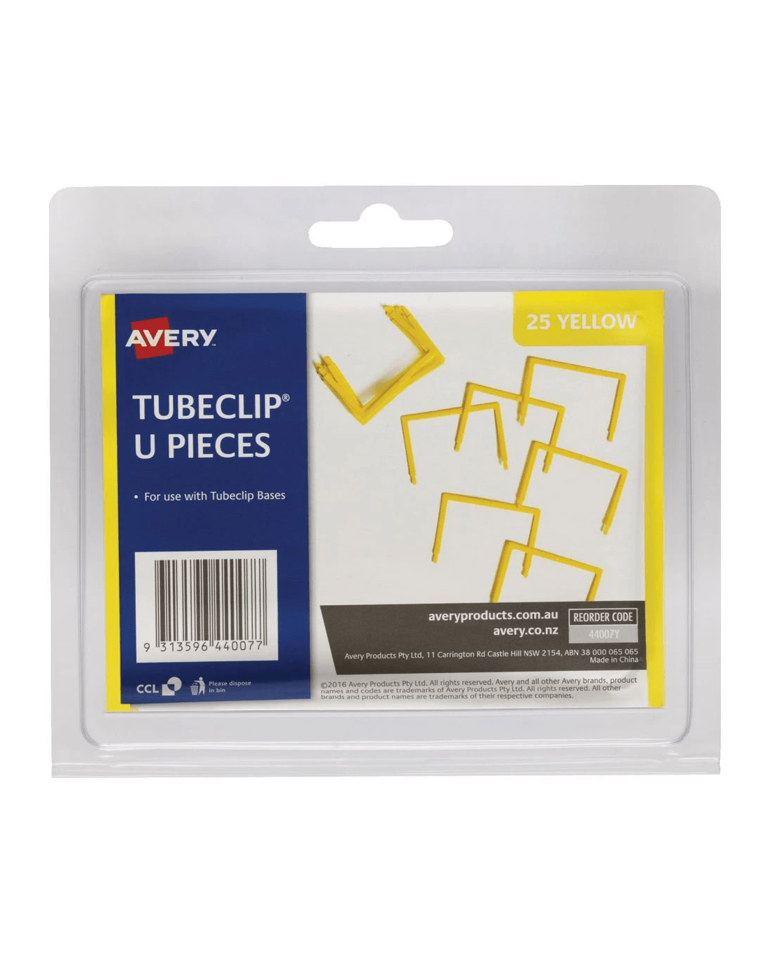 Sold by OfficeworksAvery Tubeclip U Piece Only Yellow 25 Pack