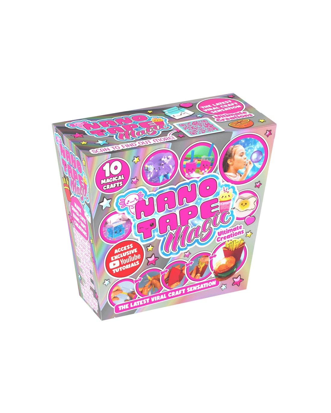 Step into a world of creativity with Nano Tape Magic Ultimate Creations. This engaging kit invites you to make adorable nano tape masterpieces, offering everything you need right in the box—just add your imagination and scissors. Enjoy making bubble kit-tea squishies, eggs-ellent eggs, bun-in-a-million burgers and charming slime-filled sweets. Easy-to-follow instructions guide you through each project, while a handy QR code unlocks extra hints, tricks and videos to inspire even more delightful designs. With colourful tape, fun charms, sprinkles and plenty of extra accessories to play with, every crafting session becomes an opportunity to express yourself. Bring your cutest ideas to life and enjoy endless hours of creative fun.Features