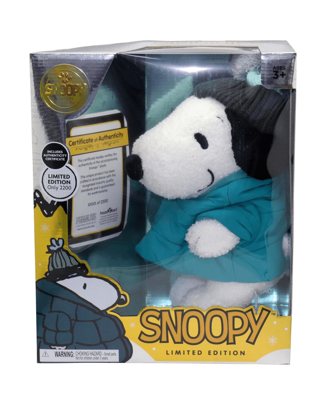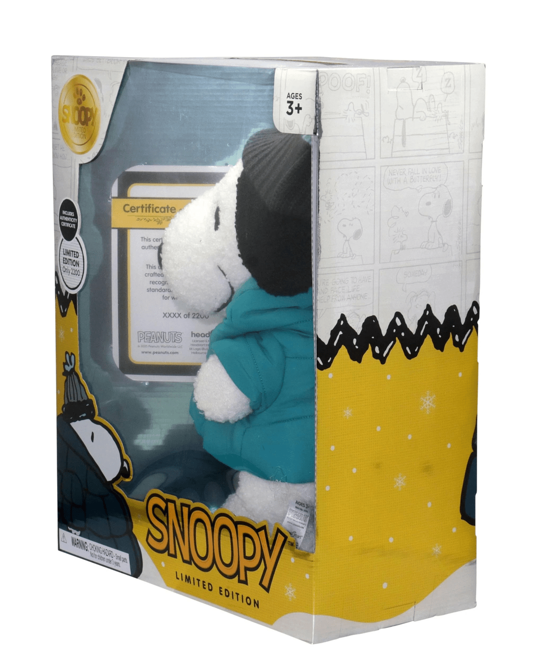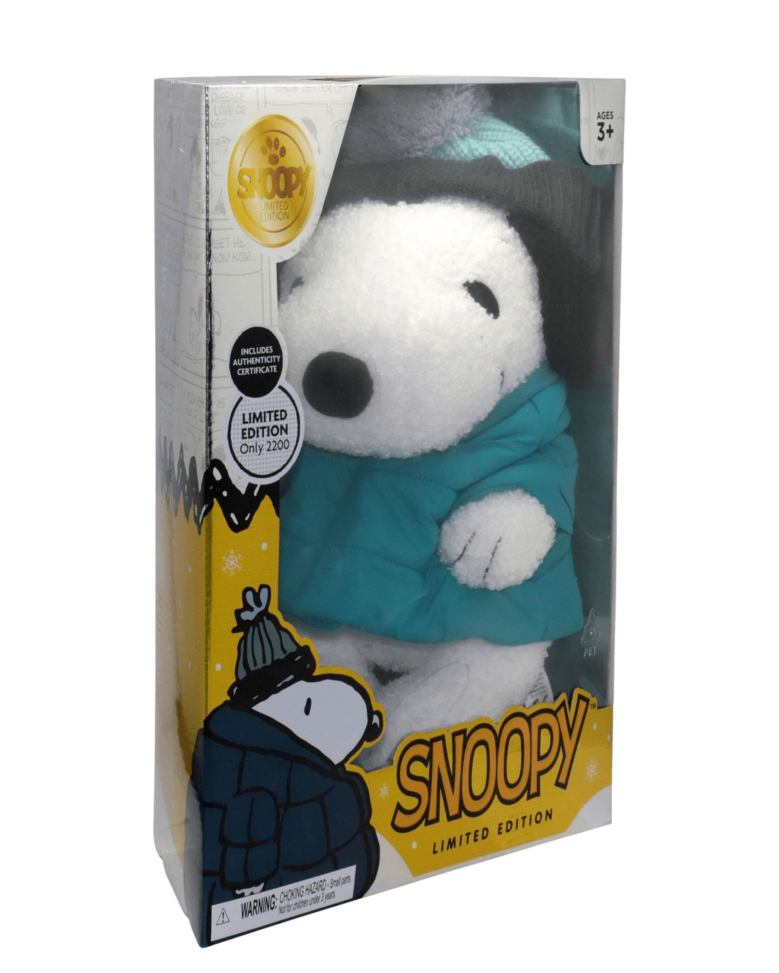 Discover the perfect blend of whimsy and nostalgia with this Limited Edition Snoopy plush, sporting a puffer jacket and a warm beanie to keep him cosy all winter long. Whether you’re reliving childhood memories or introducing Snoopy to a new generation, this adorable plush brings comfort and charm to any collection. As one of only 2,200 made around the globe and complete with its own Certificate of Authenticity, it stands out as a true collector’s treasure. Don’t miss your chance to welcome this endearing companion home; embrace the joy of Snoopy’s timeless character and make your display extra special today.Features