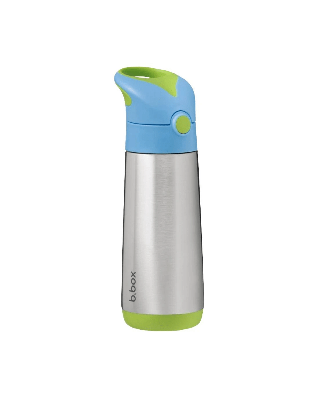 Stay hydrated all day long with this Insulated Drink Bottle from B.Box. The double-walled, stainless steel design will keep liquids cool for up to 15 hours and warm for up to 8 hours. It features an integrated carry handle and front press button opening, plus, the silicone straw offers free flow drinking that clicks into place once done for leak-free schoolbags.