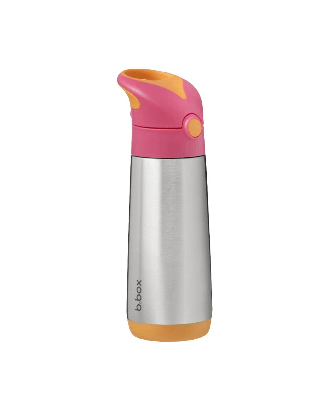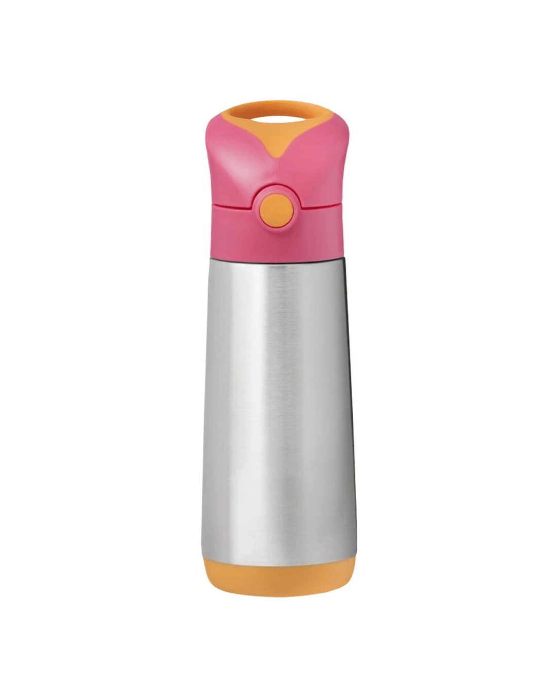 Stay hydrated all day long with this Insulated Drink Bottle from B.Box. The double-walled, stainless steel design will keep liquids cool for up to 15 hours and warm for up to 8 hours. It features an integrated carry handle and front press button opening, plus, the silicone straw offers free flow drinking that clicks into place once done for leak-free schoolbags.