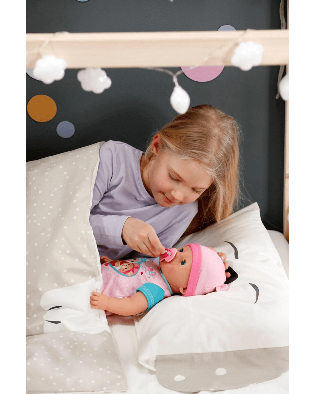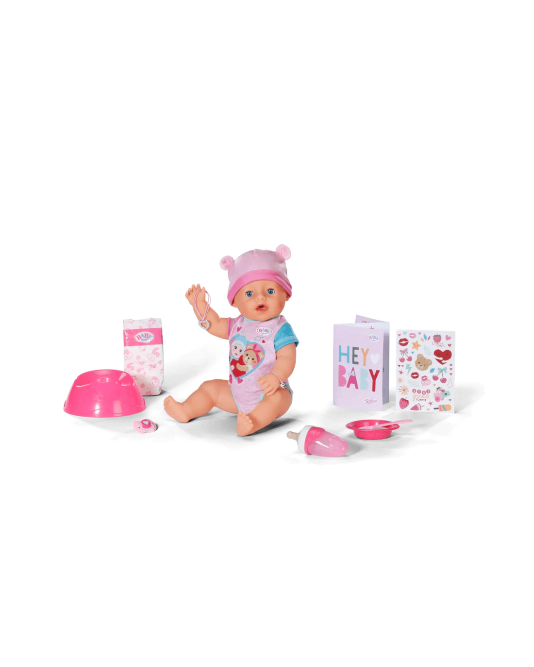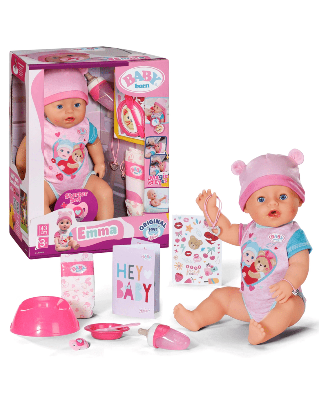 Meet Emma, the delightful 43cm Baby Born doll who's ready to become a cherished friend in your child's world of make-believe. Emma’s gentle soft touch and lifelike movements will spark little imaginations as she enjoys cuddles, mealtime, and bath time adventures. She can drink from her bottle, cry real tears, and even use her potty, making roleplay feel all the more real and engaging. Emma’s eyes open and close magically, and her flexible arms and legs make changing her outfits and giving lots of hugs a breeze. With a set of lovely basics and playful accessories, Emma is perfect for encouraging creativity and nurturing skills. Let your child welcome Emma into their day, and watch the wonderful stories unfold. Bring Emma home today for hours of heartwarming play.