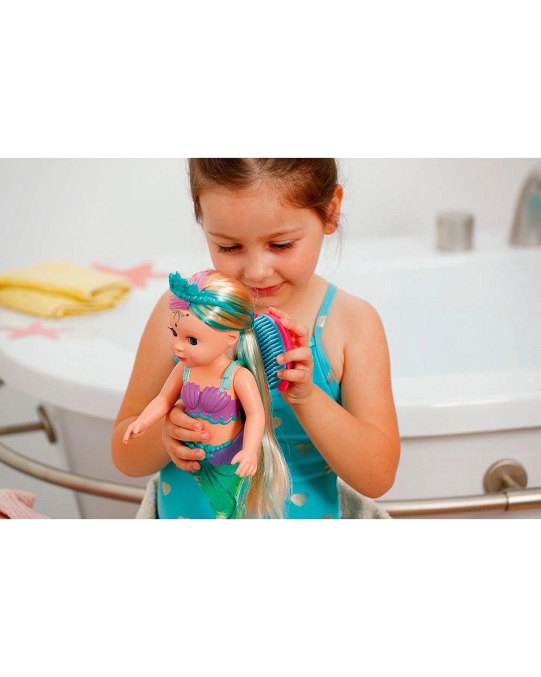 Dive into an ocean of fun with the magical, light-up mermaid toy that's perfect for playtime adventures, in or out of the water! With a mesmerizing, colour-changing tail that lights up in blue, red, and green, this magical mermaid is ready to bring joy on land and under the sea. Whether she's swimming in the tub or twirling through an imaginary ocean, her glowing tail will captivate your little one. With long, colourfully highlighted hair, she's ready for endless styling fun. Comb, twist, braid, and create as many hairstyles as you can imagine and top off every look with her sparkly tiara, and she's ready to reign over the underwater kingdom. Inspiring imaginative, hands-on play; get yours today and make every day magical! Ages 3 +