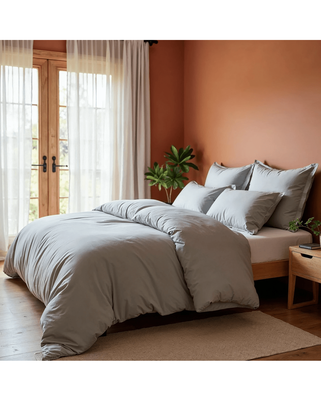 Made from a 50% bamboo and 50% cotton blend, this quilt cover set offers a soft, breathable, and smooth feel for all-season comfort. The 1000 thread count weave enhances durability while maintaining a lightweight texture.