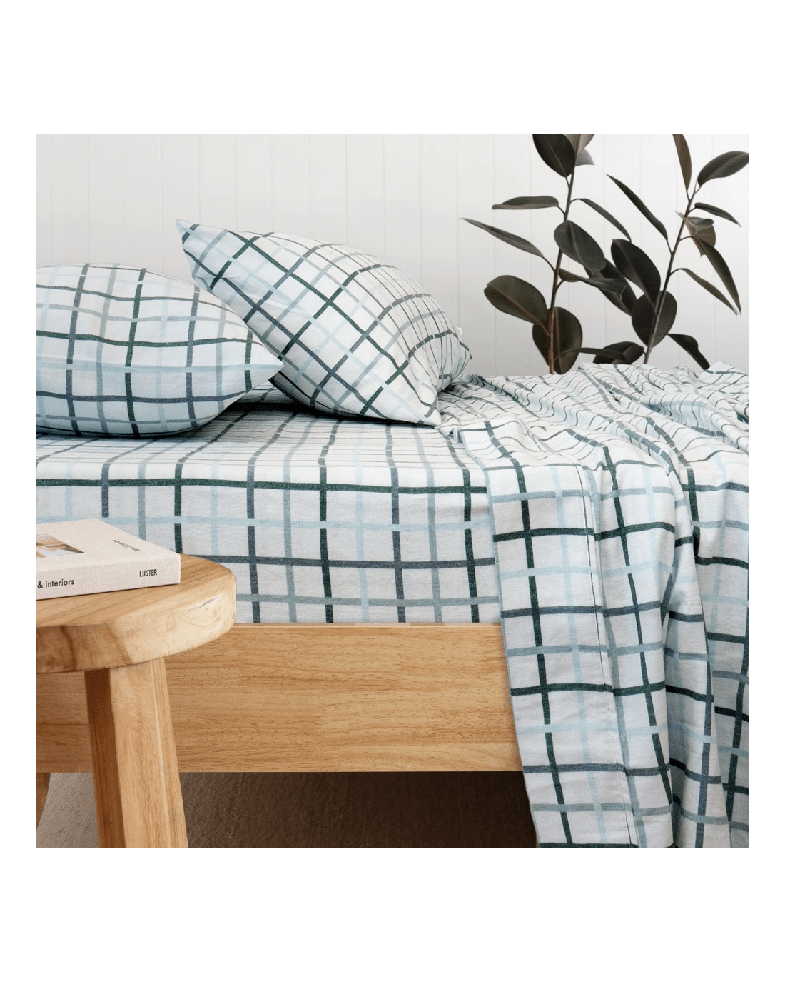 Campbell Brushed Cotton 160GSM Flannelette Sheet Set - Queen Bed - Blue - Queen Bed - Blue