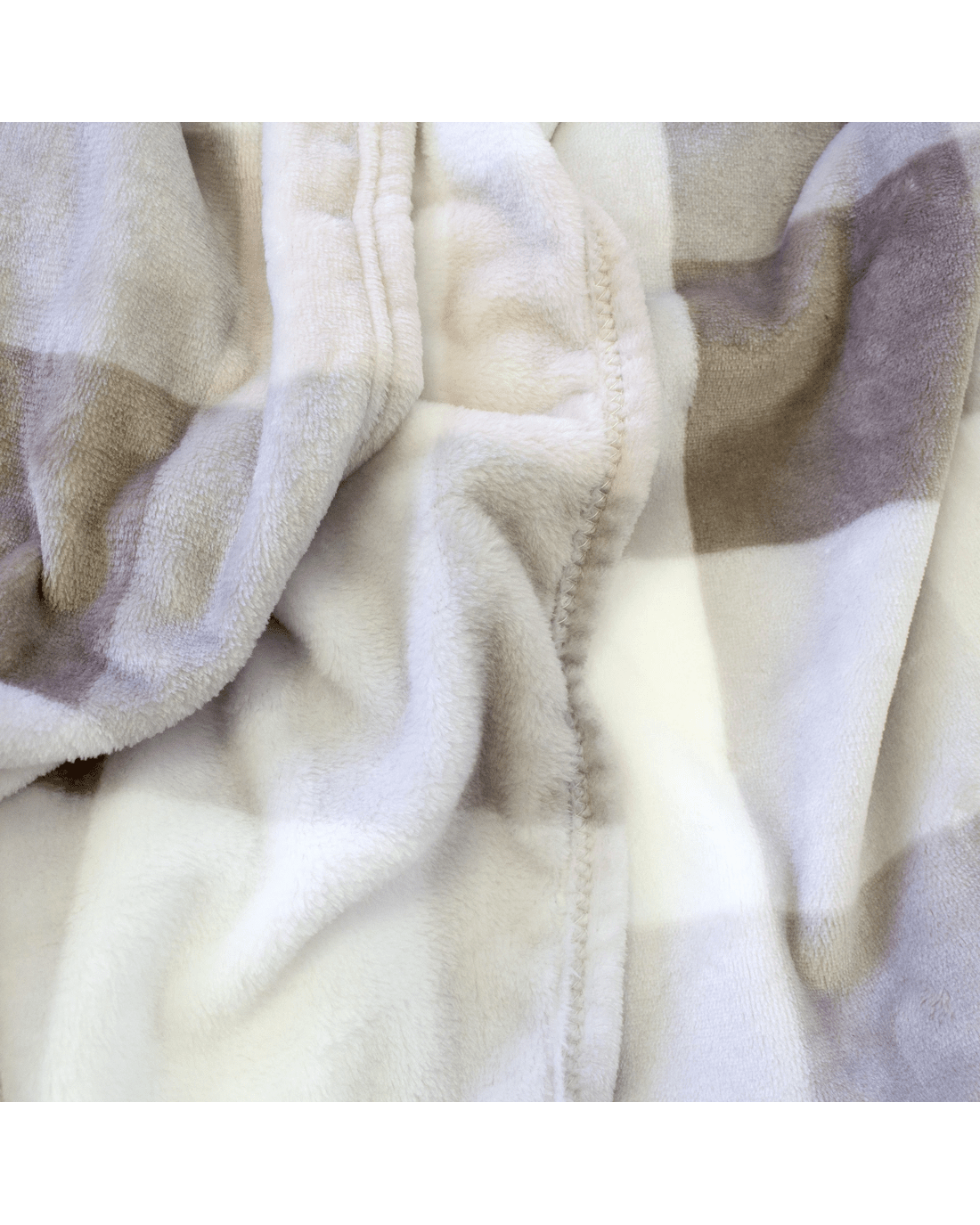 Bambury Charlie Ultraplush Polyester Flannel Fleece 280gsm Soft Checkered Blanket Nougat - Single Bed - Natural