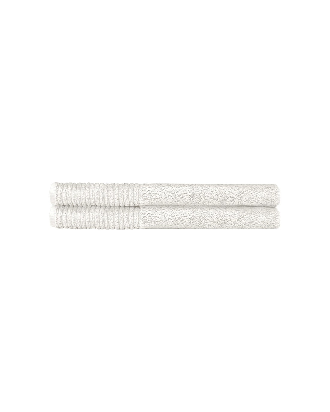 Each mat features a stylish small drop pile stripe pattern at both ends, coordinating beautifully with the Elvire towel collection. The mats are easy to care for, with machine washable instructions that help maintain their softness and appearance over time.