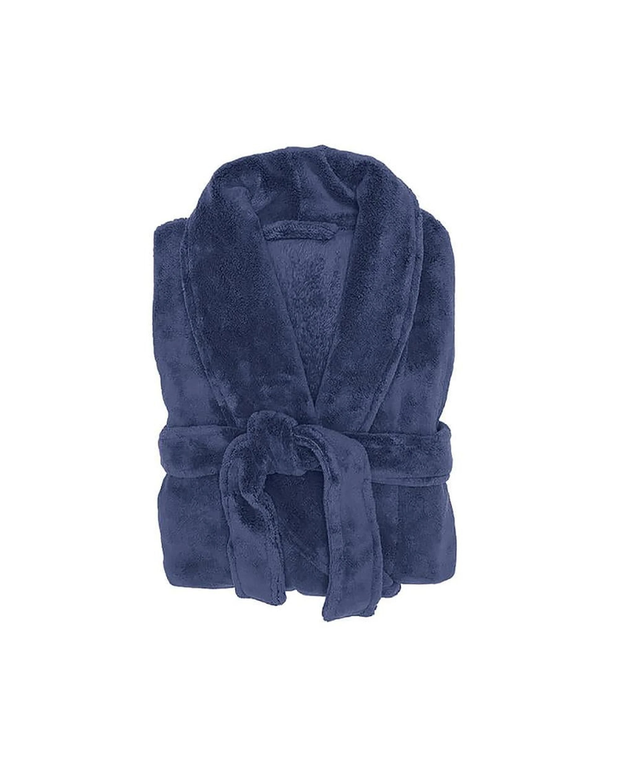 Bambury Microplush Coral Fleece Bath Robe — 100% Polyester (Denim) - Blue