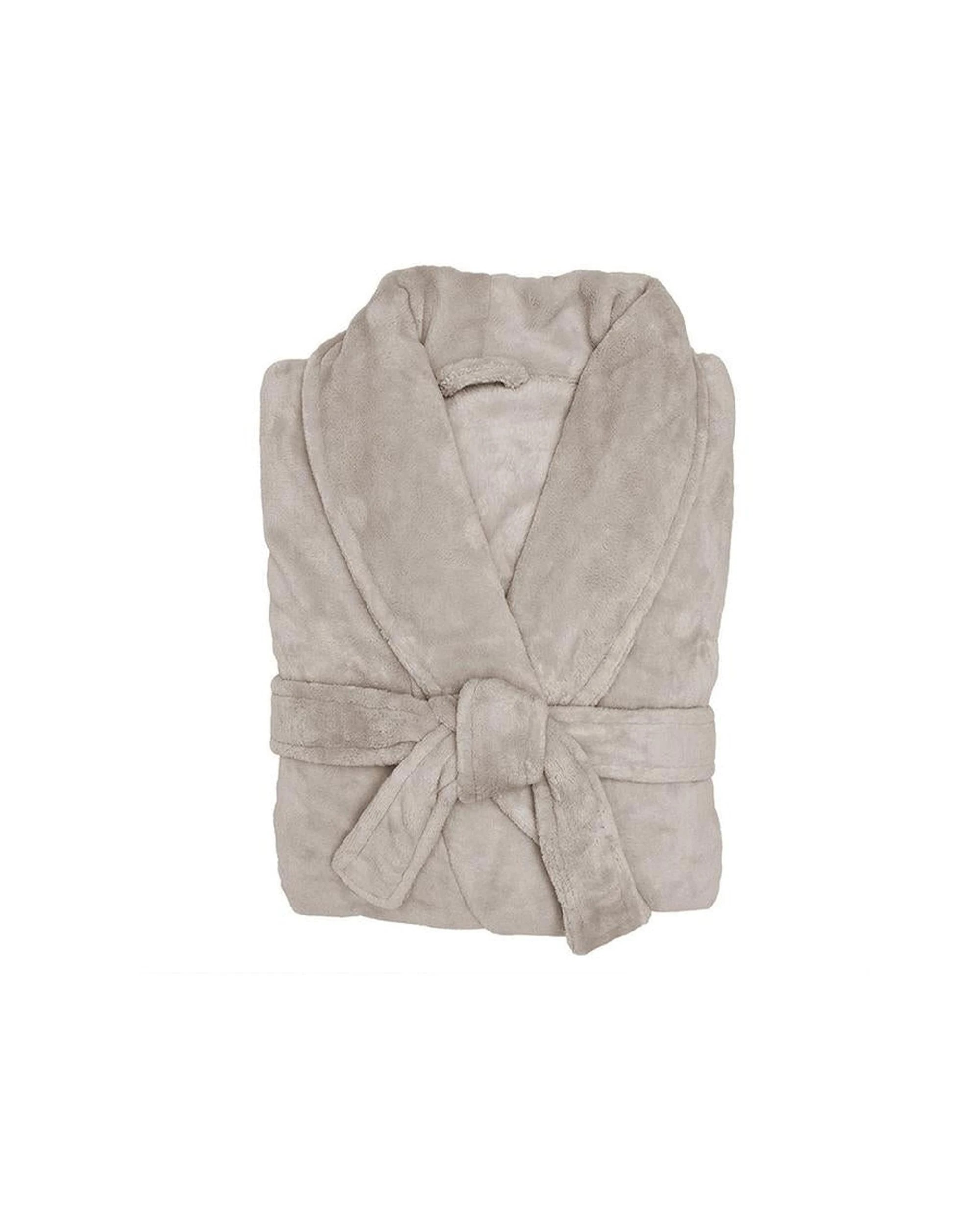 Bambury Microplush Coral Fleece Bath Robe — Stone, 124 cm (100% Polyester) - Grey