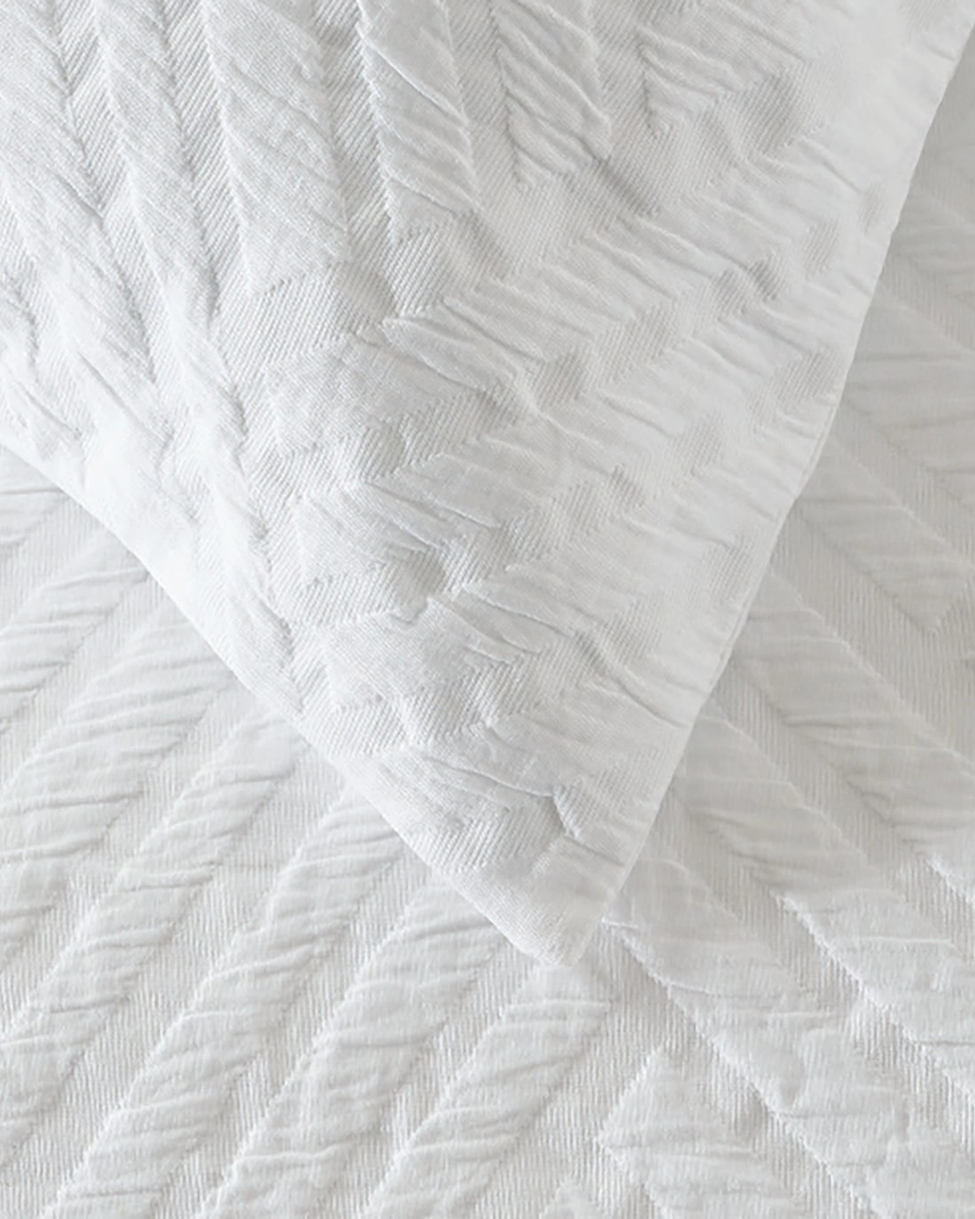 A high-quality jacquard quilt cover that brings effortless style to any bedroom. The subtle geometric design is woven into the fabric, creating a beautifully textured, slightly raised pattern. Crafted from a durable cotton-polyester blend, this quilt cover is designed to wash and wear well. The entire set features a single, cohesive white colour, with the reverse side made from soft cotton in the same matching shade.