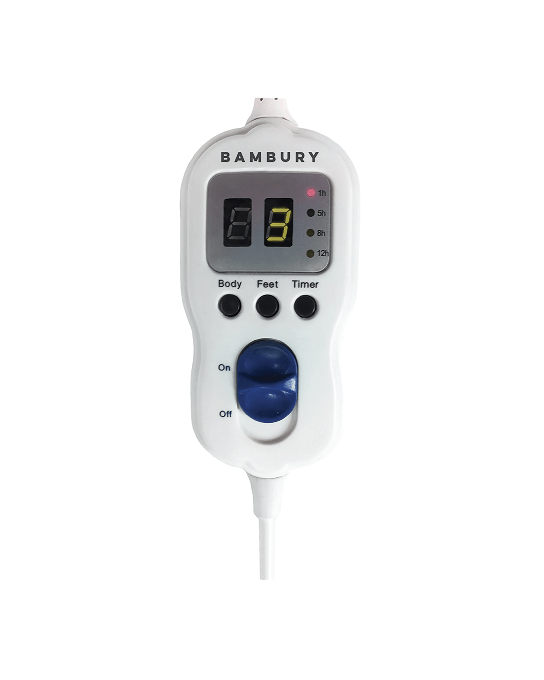 Keep warm this winter with Bambury's Premium Electric Blanket, available in a range of sizes for your family. The Premium Blanket comes with dual illuminated controllers(*) for individual comfort settings, and separate heating zones, so that you can warm up the blanket where you need warmth the most, your body or your feet. The heating elements are well hidden under a super soft foam core that is really comfortable to sleep on, and covered in a luxurious Microplush cover. The controllers are also detachable which allows for safe washing and they come with an overheating safeguard system, all of which meet the strict Australian and New Zealand safety standards. The Blankets are fully fitted, meaning that they have fabric side walls rather than just elastic straps. and come with a 2 year warranty. (*only one controller for King Single & Single)