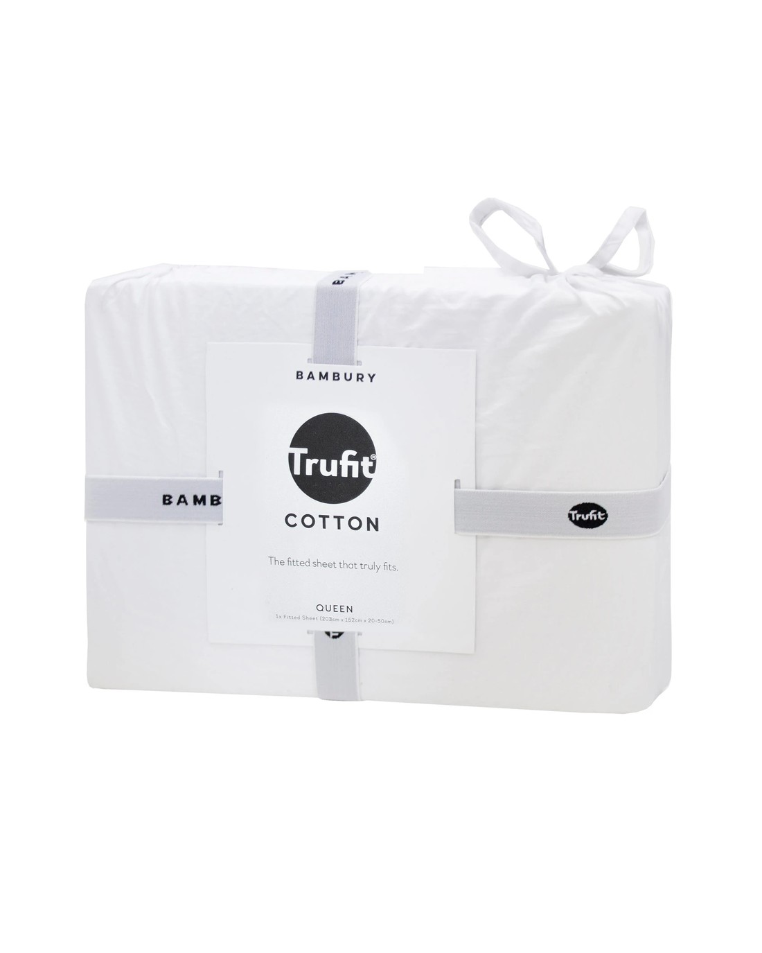 Bambury TRUFit Wide Elastic 100% Cotton Deep pocket Fitted Sheet - Long Single Bed - White