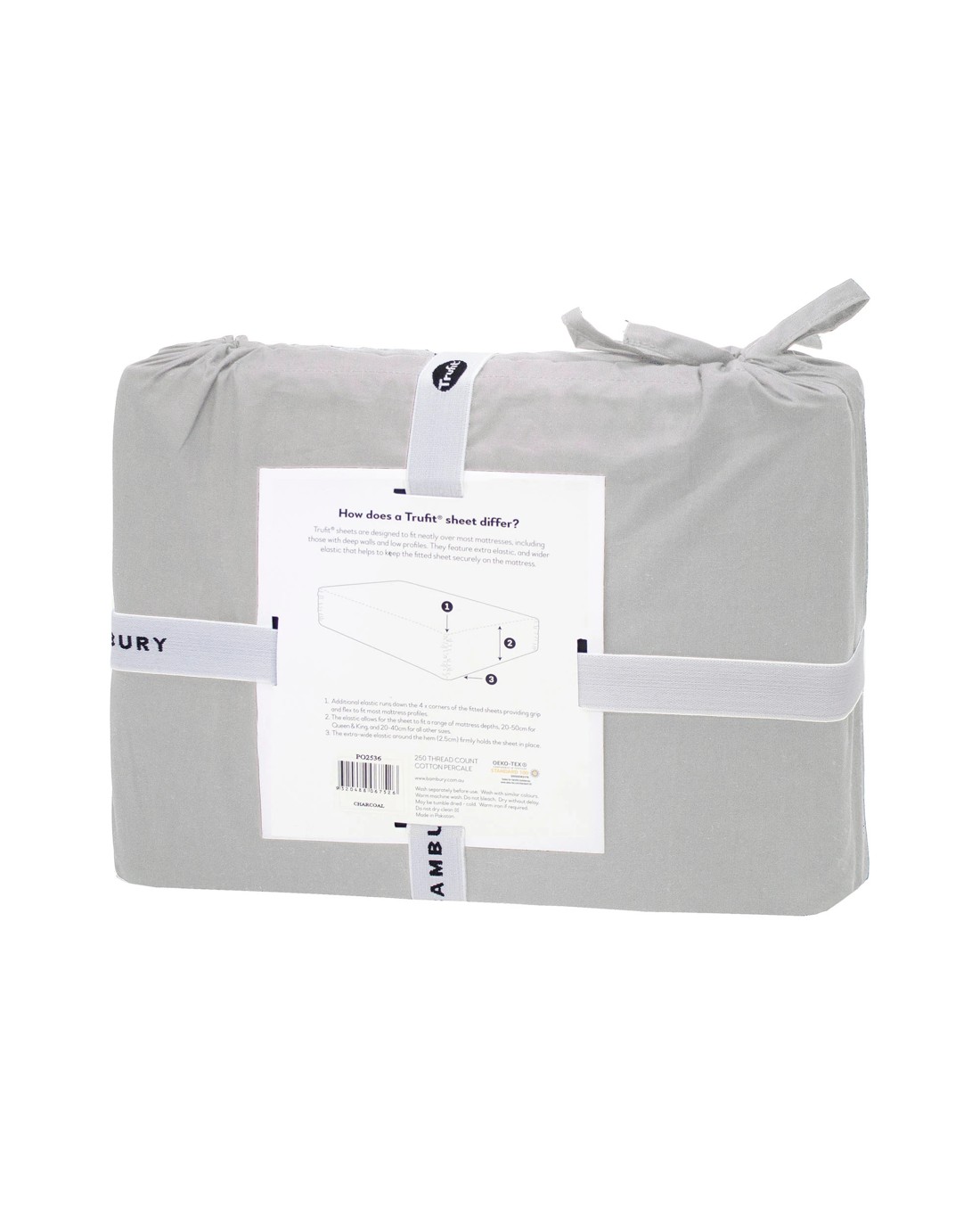 Bambury TRUFit Wide Elastic 100% Cotton Deep pocket Fitted Sheet Only - Single Bed - Silver