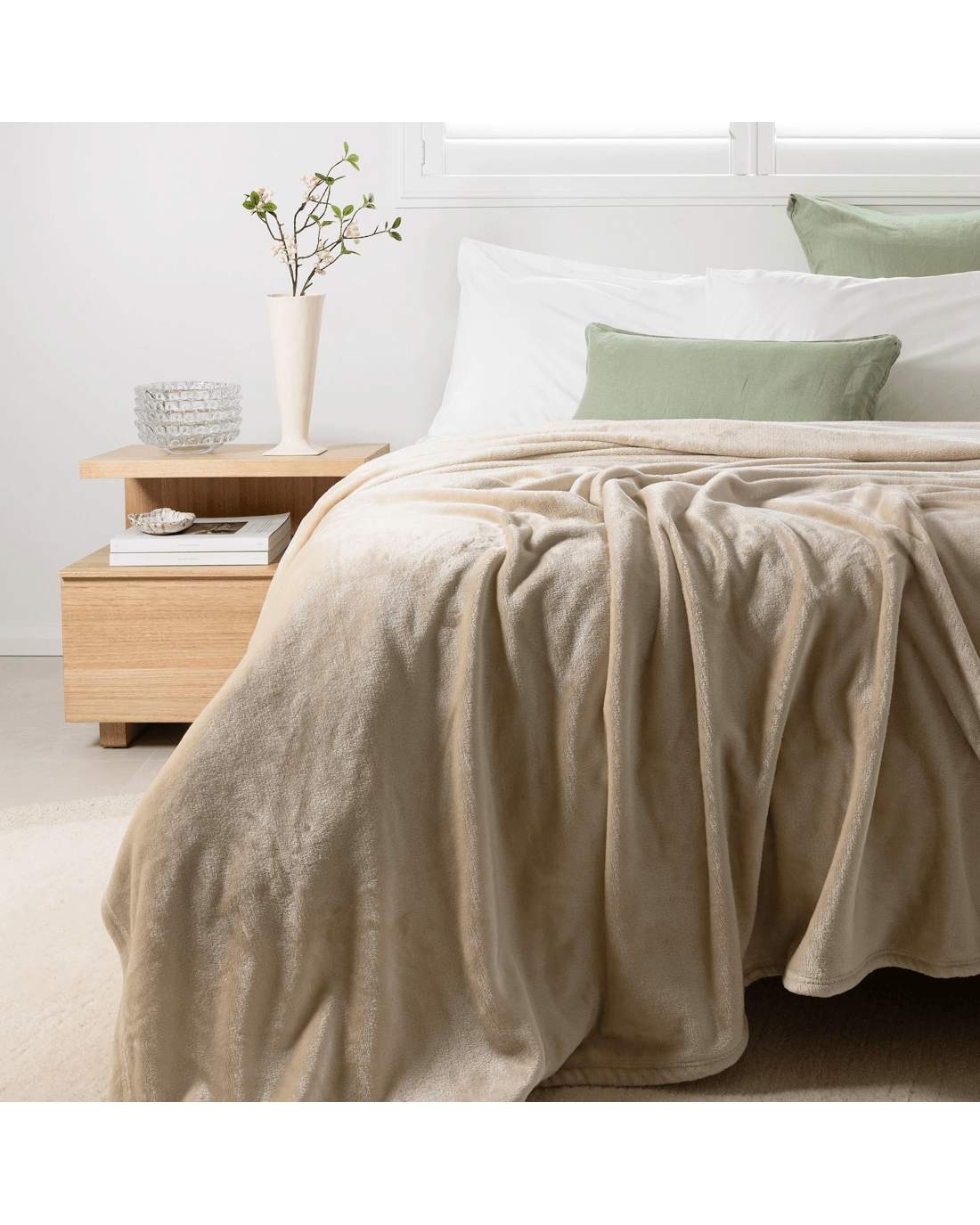 Bambury Solid Ultraplush Polyester Cosy Blanket Linen - King Bed - Natural