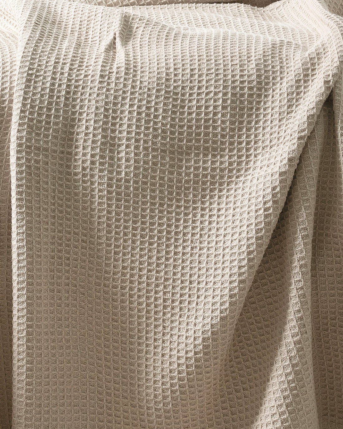 The BAMBURY Waffle Weave Blanket is designed for adding a soft, textured layer to your bedroom or living space. Crafted from 100% cotton, this blanket offers a breathable and comfortable feel suitable for use all year round, making it a versatile addition to your home.