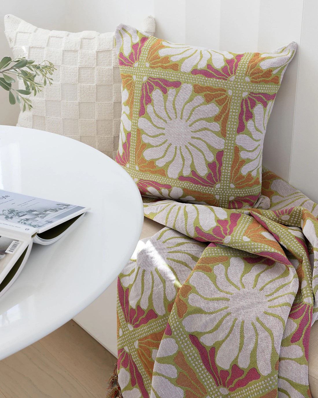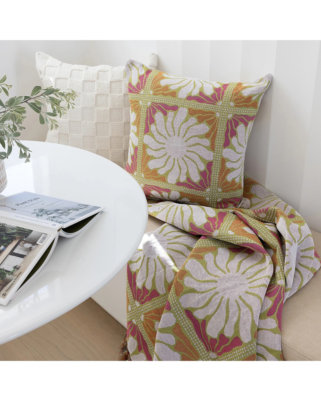 Bambury Zinnia Tapestry Woven Recycled Cotton and Polyester Throw Blanket Sorbet - Multi