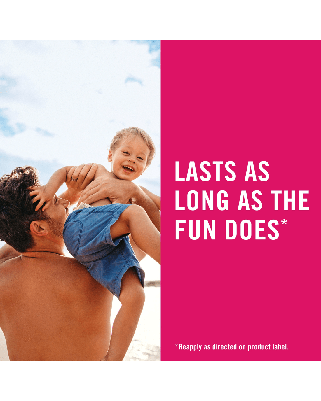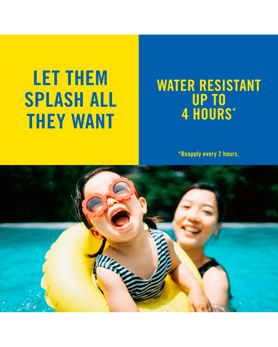 Banana Boat® Kids Sunscreen has a mild formula that won't run into eyes and is also fragrance free, perfect for your children's delicate skin. This lightweight, non-greasy formula is dermatologically tested and provides a very high UVA/UVB protection and 4-hour water-resistance so that you can keep up with your kids when you're out in the sun.