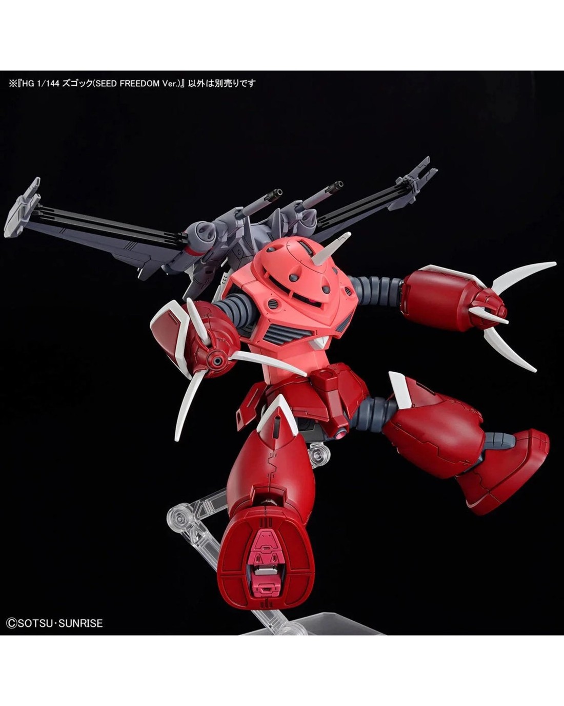 The Z'Gok, which plays an impressive role in "Mobile Suit Gundam Seed Freedom," is finally joining Bandai's "High Grade (HG)" model-kit series! Equipped with the unique SEED Action System, it allows you to recreate dynamic poses full of movement, including the bellows of its arms and legs and the large movements of its abdomen. You can recreate the damaged head armour with parts replacement; Red-Hot Claw parts are included that are interchangeable with its normal claws. The shape of its internal frame is modeled after the 1/144-scale HG Infinite Justice Gundam Type-2; parts from that kit can be incorporated into this kit if you like! Ages 8 +