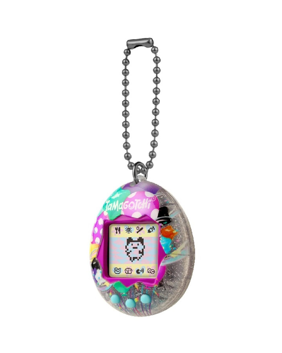 The Original digital pet you loved in 1997 is back with a Pretty Party shell! With original programming, you feed it, clean up after it, take care of it and even discipline it if it's bothering you when it doesn't need you! Plus, you can play the Character game! How you take care of your Tamagotchi and how you do in the game, determines which Adult Tamagotchi you'll get! Includes the CR2032 battery and attaches to your bag so it goes everywhere! Ages: 8+