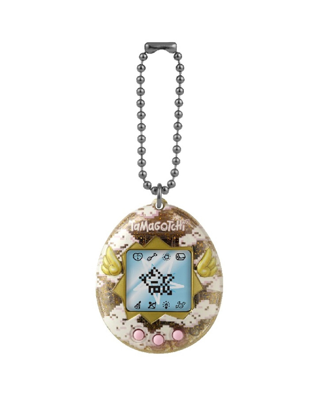 The Original digital pet you love with a Lovely Angel shell design and three-dimensional wings! Comes with the Angel programming, the device will begin with the Obaketchi Angel (a ghost character) and depending on how you nurture your character will determine which of the 5 adult Tamagotchi Angel characters you will get. You feed it, clean up after it, and even praise it. Plus, you can play the Shooting Star mini game! Includes the CR2032 battery and attaches to your bag so it goes everywhere! Ages: 8+