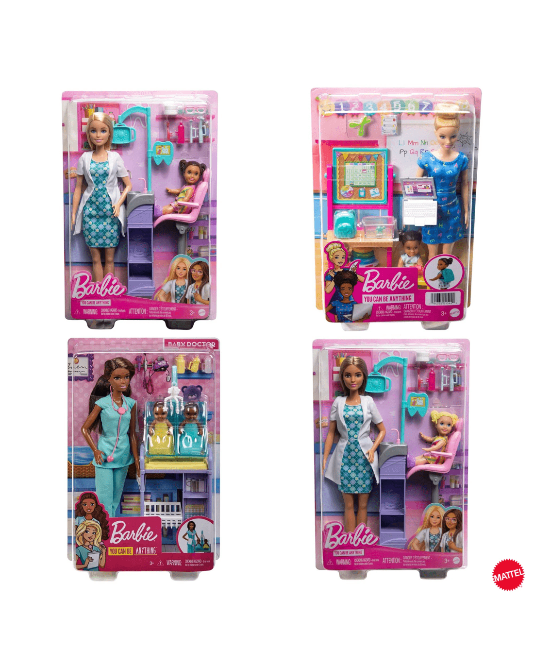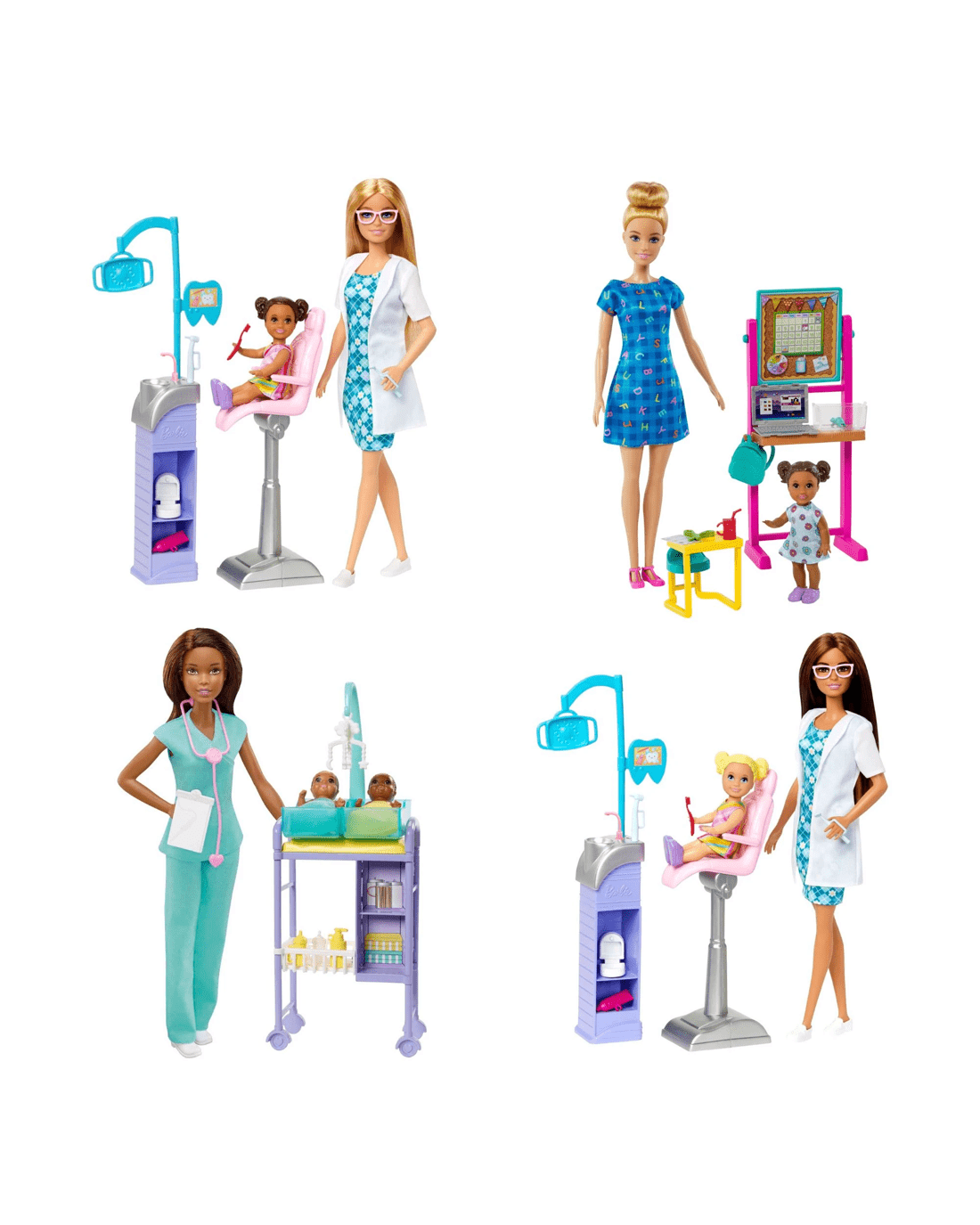 - Choose playsets from favourite professions that range from art teacher to baby doctor that capture Barbie doll's caring for others and her nurturing spirit