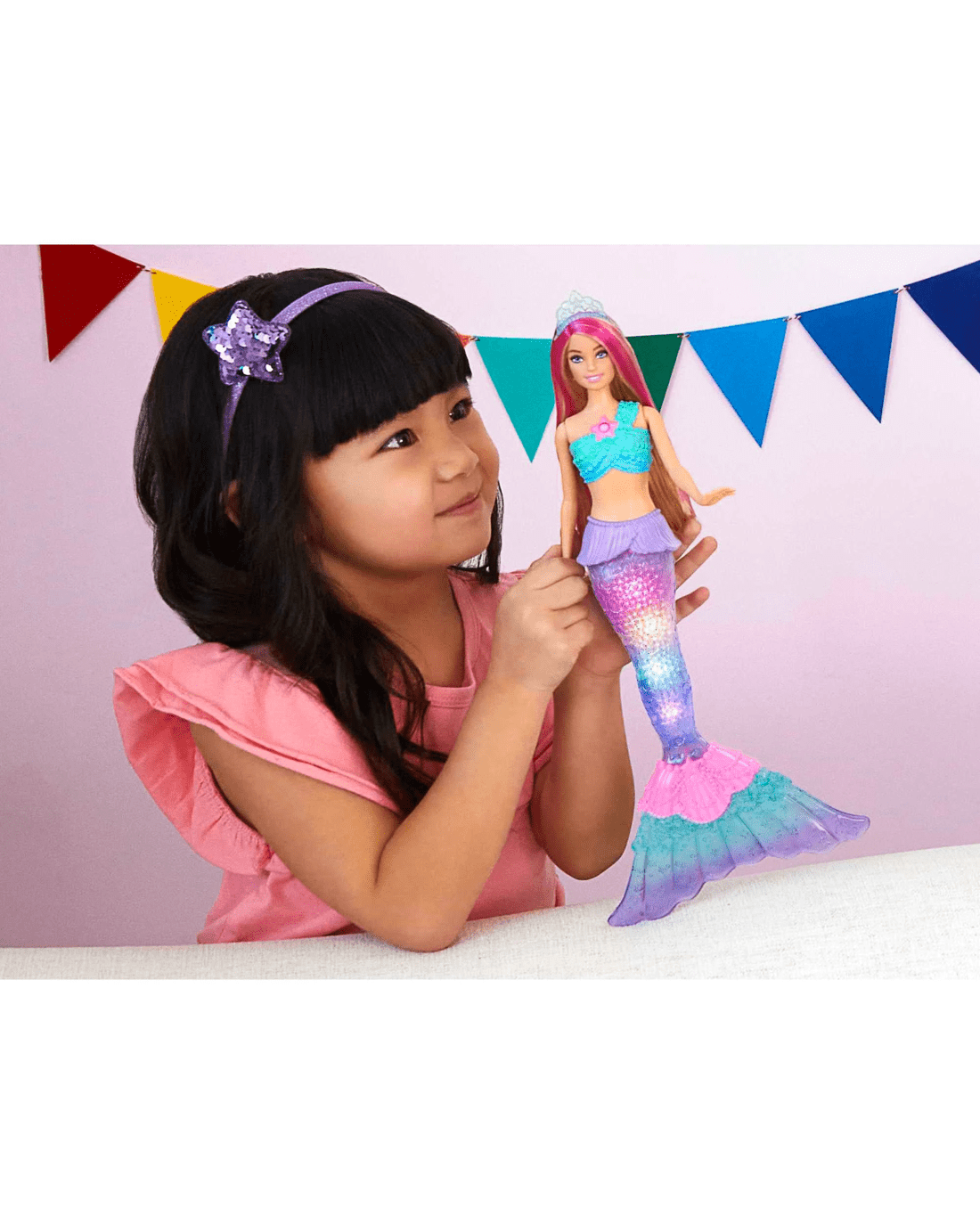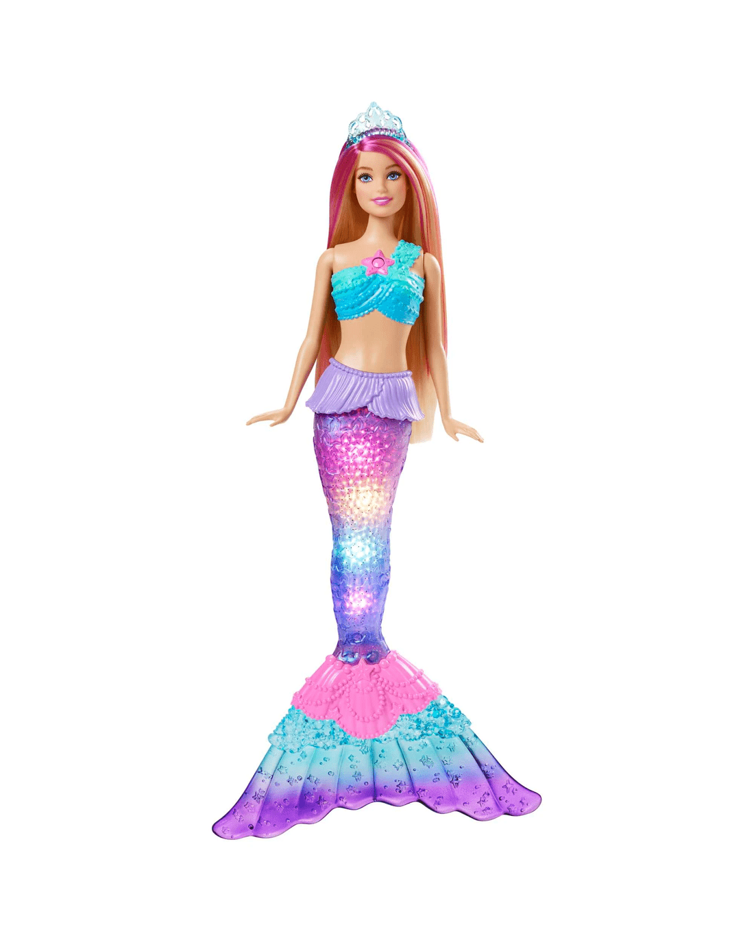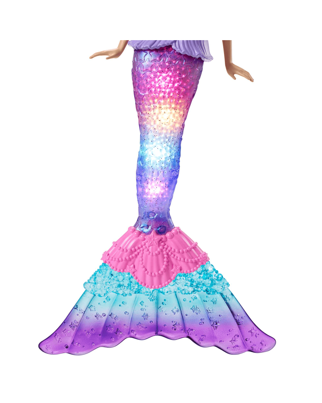 - With a fantastical light-up feature and so many sparkling details, this Barbie mermaid doll makes a great gift for 3 to 7 year olds
