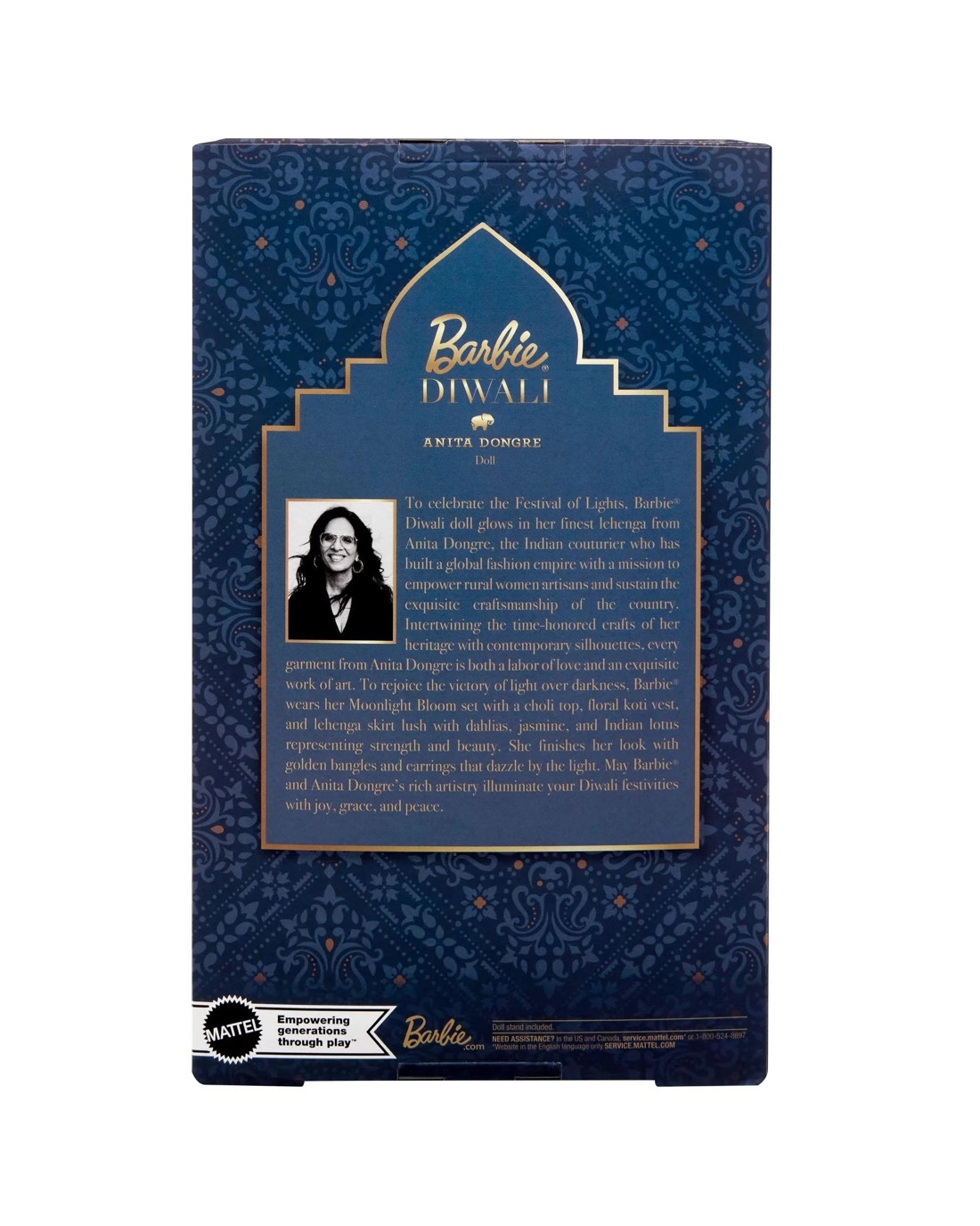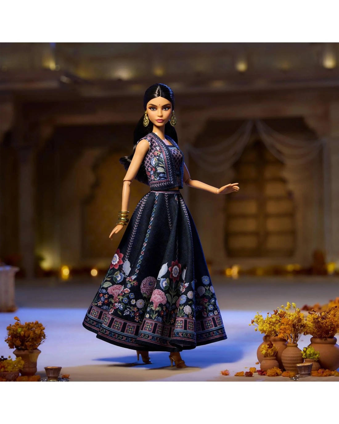 Celebrating Diwali, the Festival of Lights, Barbie doll wears her finest lehenga from Anita Dongre. The Indian couturier has built a global fashion empire with a mission to empower rural women artisans and sustain the exquisite craftsmanship of the country. Like every garment from Anita Dongre, this Midnight Bloom look is a labour of love and an exquisite work of art. The doll comes with a stand for posing and display, as well as a Certificate of Authenticity. Doll cannot stand alone. Colours and decorations may vary. Ages 6 +