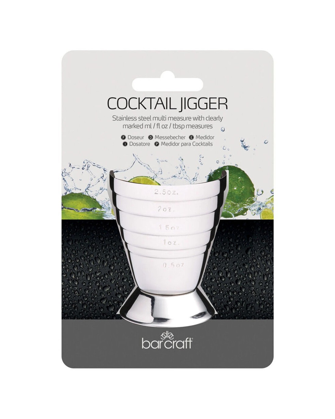 BarCraft 2PK Cocktail Jigger Stainless Steel 15-75ml Measuring Tool - Silver