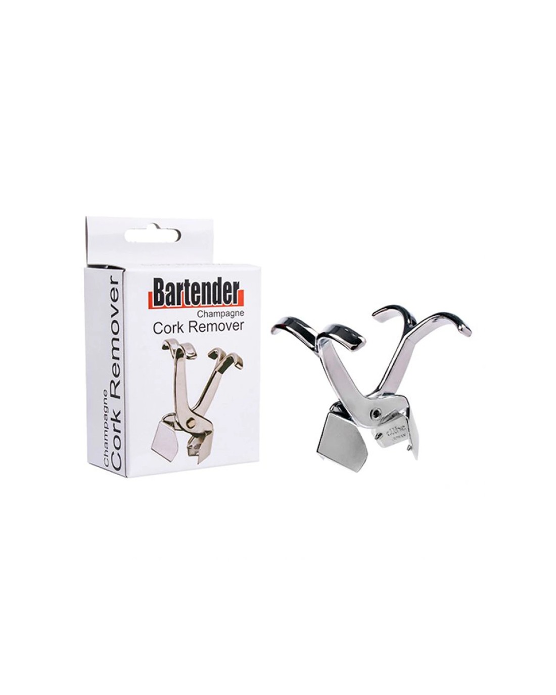 The Bartender Champagne Cork Remover (Model 7013) is a durable metal bottle opener designed for quick, low-effort removal of corks from champagne and wine bottles. Its sleek silver finish adds a classic touch to home bars and professional settings, while the sturdy metal construction ensures reliable performance with repeated use. Easy to operate, this opener helps you serve drinks smoothly and confidently. Includes a 12-month warranty.