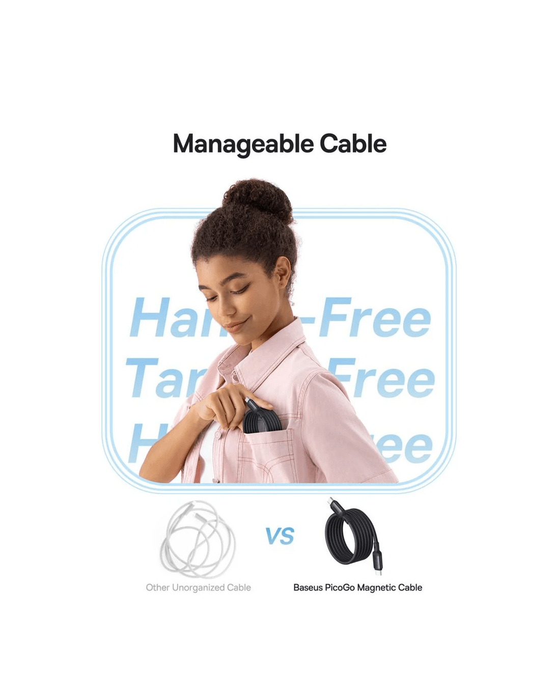 This Baseus Picogo Magnetic Fast Cable delivers up to 240W of power for ultra-fast charging of compatible USB-C devices. The magnetic connection makes it easy to attach and detach, helping to reduce wear on your ports. Plus, the 1 m length offers convenient reach for everyday use at home, work or on the go.