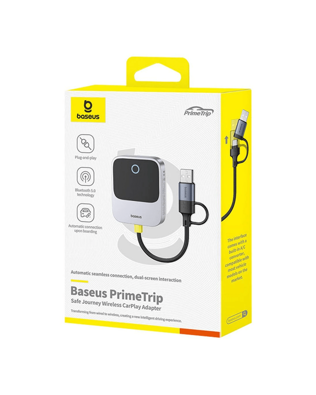 This Baseus Wireless CarPlay Adapter lets you connect to your CarPlay compatible device wirelessly. The durable, stable design requires less plugging and unplugging to simplify your in-car experience. Plus, it includes a USB-C to USB-A adapter so it's compatible with various setups.