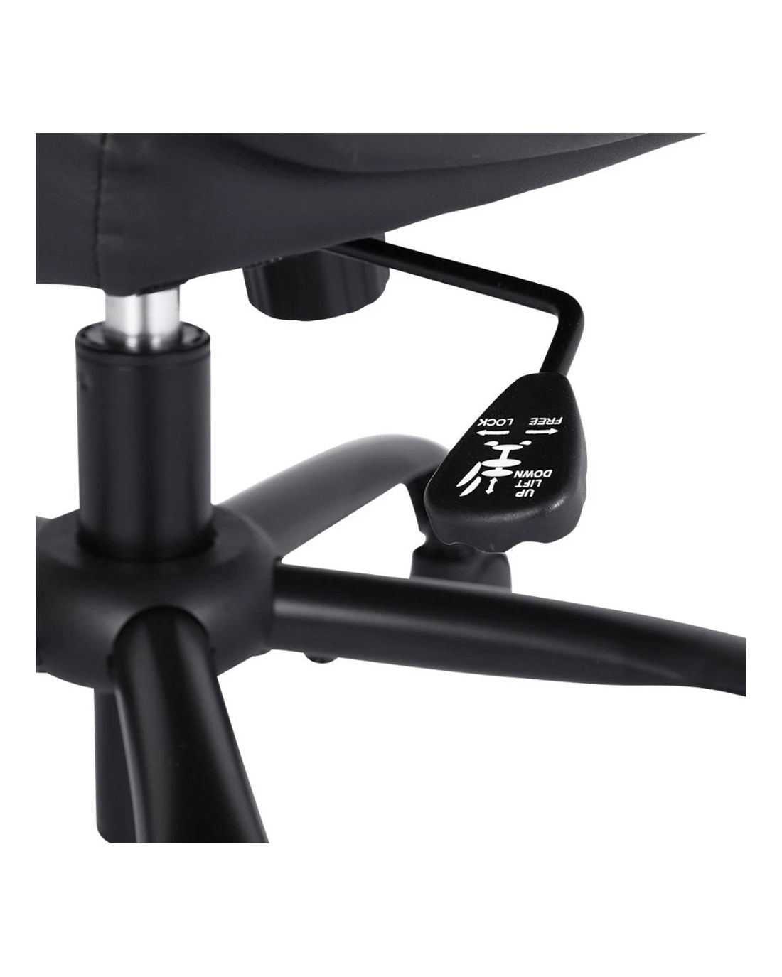 • This chair has gas-lift height adjustment and chair-tilt adjustment functionality.