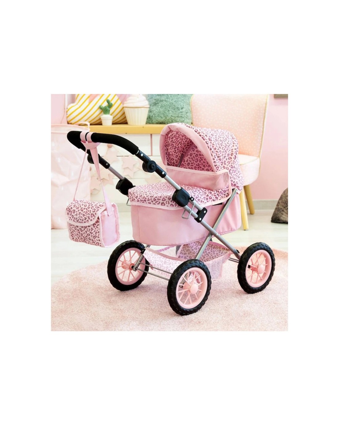 Sold by KG SuperStoreBayer Leopard Print Pram Kids Toy For 46cm Dolls Adjustable Handle Basket Bag - Pink