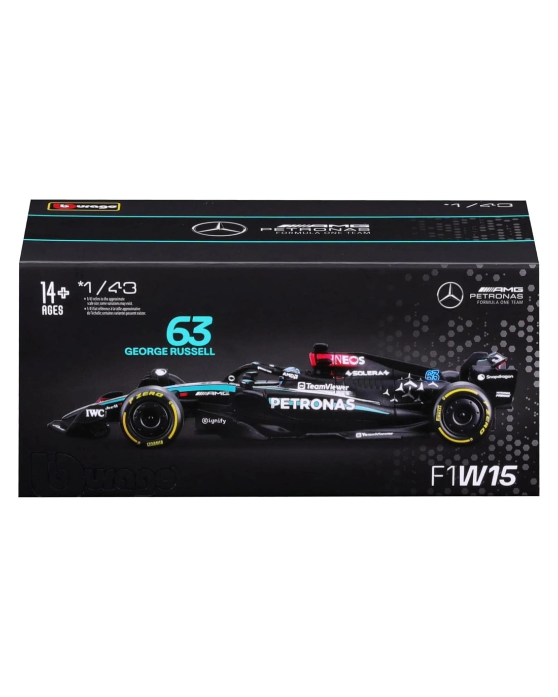 Bburago Formula Racing 2024 F-1 Mercedes AMG W15 #63 George Russell with Helmet 1:43 Scale Diecast Vehicle