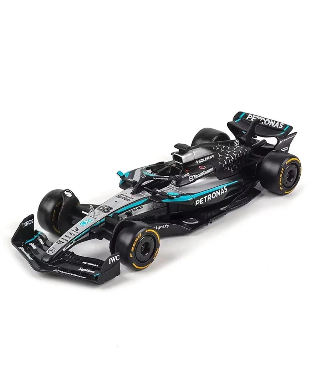 - Diecast metal body: replicates the aerodynamic design of the 2025 Mercedes-AMG F1 W16
