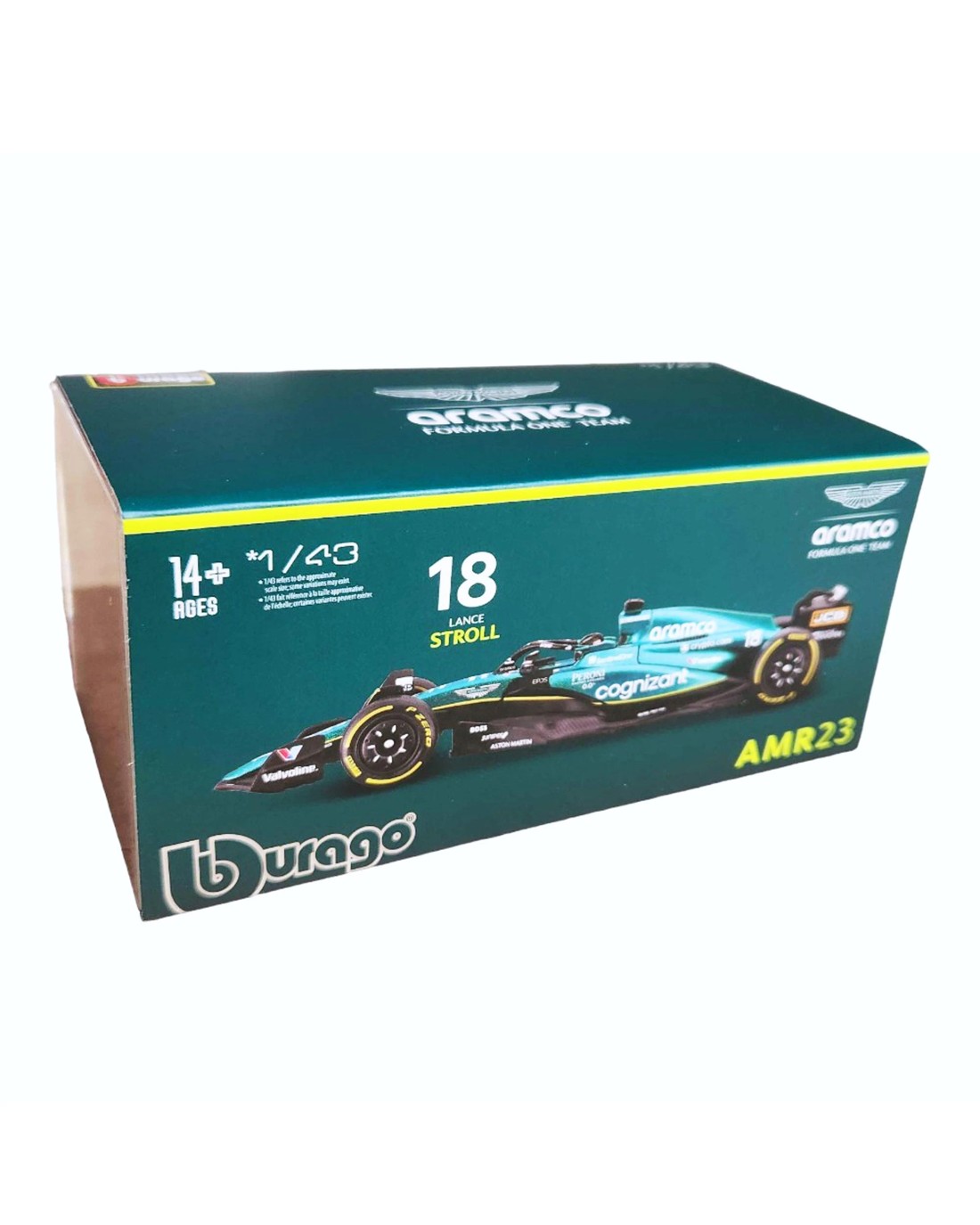Bburago Racing F-1 2023 Aston Martin AMR23 #18 Lance Stroll with Helmet 1:43 Scale Diecast Vehicle