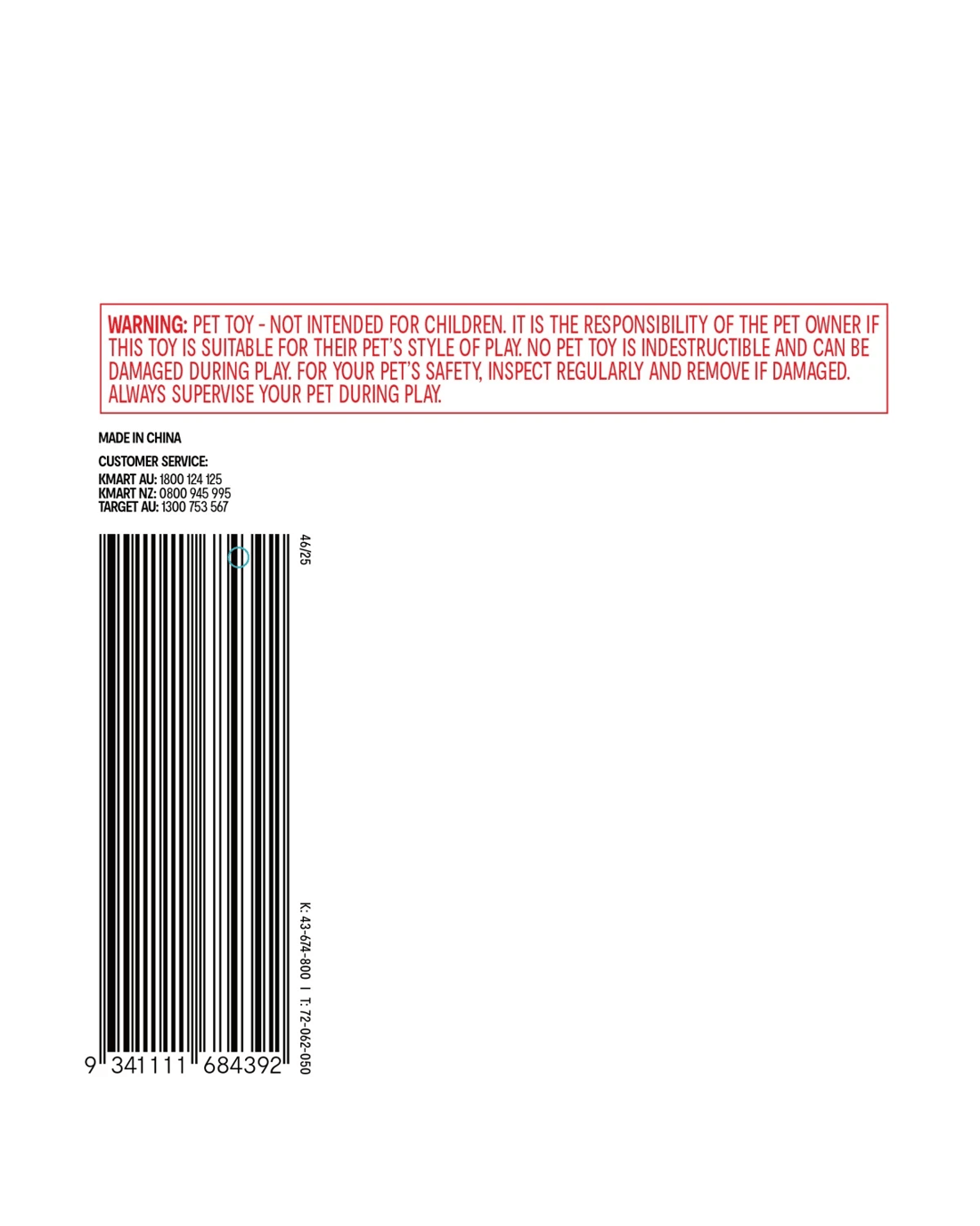 Caution: Pet toy - not intended for children. Always supervise your pet during play. Follow usage instructions carefully.