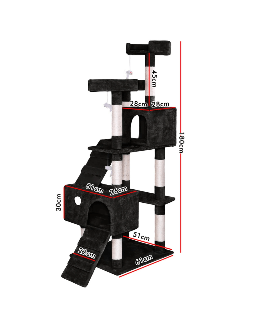 Beastie Cat Tree Scratcher Tower Scratching Post Condo House Furniture Wood 180CM - Black