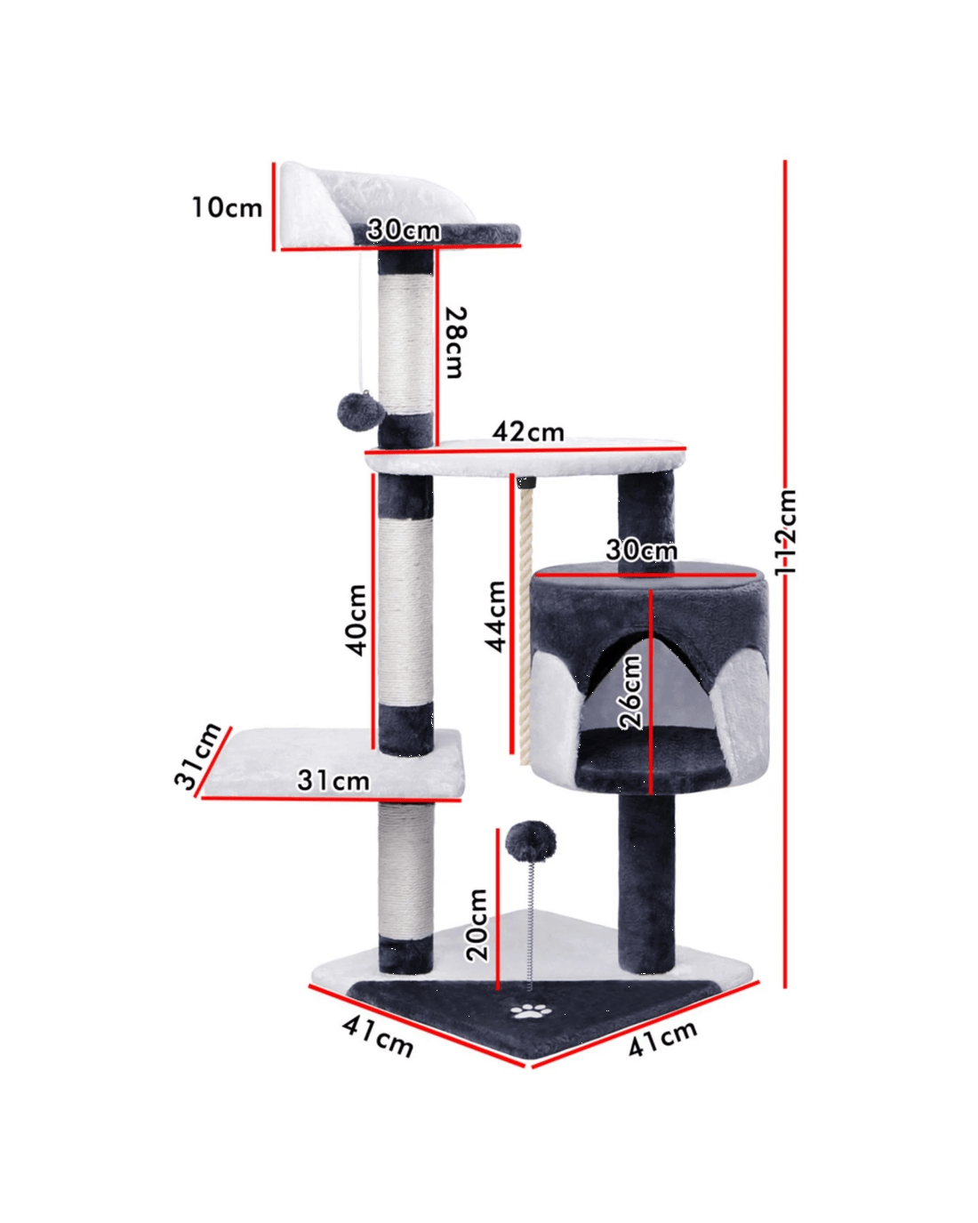 Beastie Cat Tree Scratching Post Scratcher Tower Condo House Furniture 112CM - Grey White