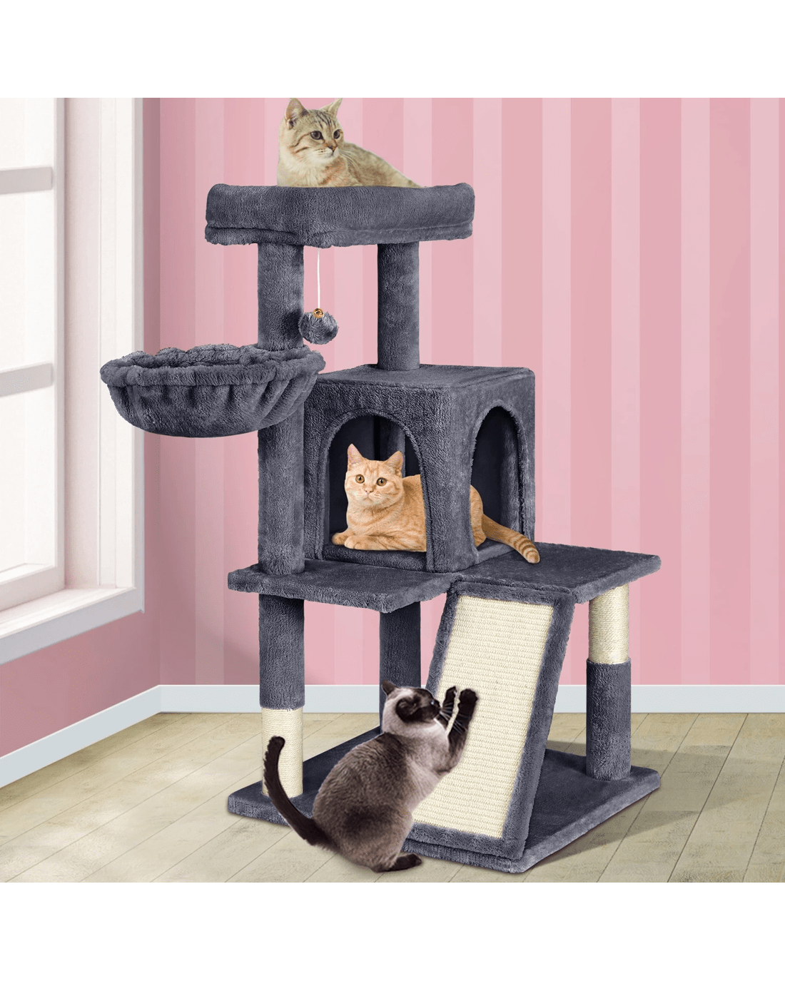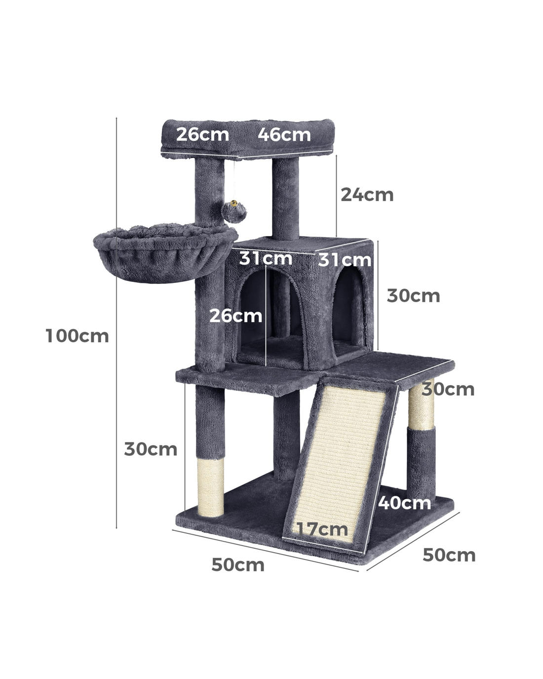 Beastie Cat Tree Scratching Post Scratcher Tower Condo House Furniture Wood 100cm - Grey