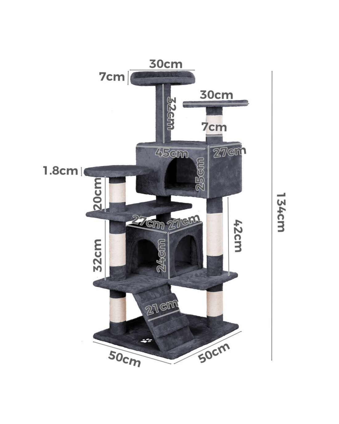 Beastie Cat Tree Scratching Post Scratcher Tower Condo House Furniture Wood 134CM - Grey