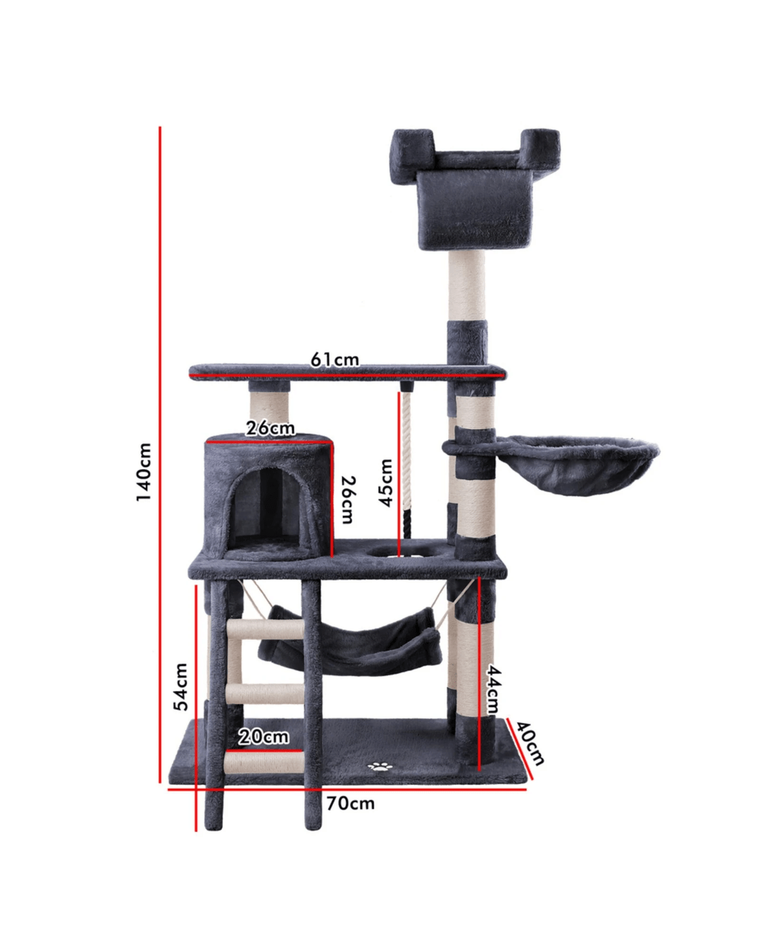Beastie Cat Tree Scratching Post Scratcher Tower Condo House Furniture Wood 141CM - Grey