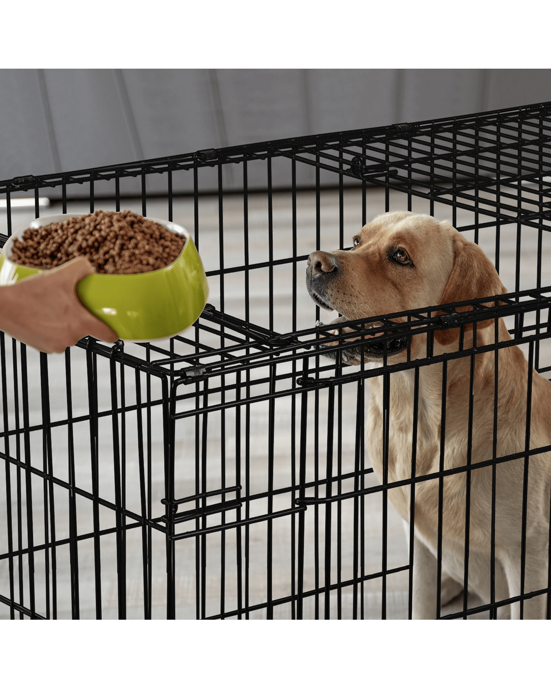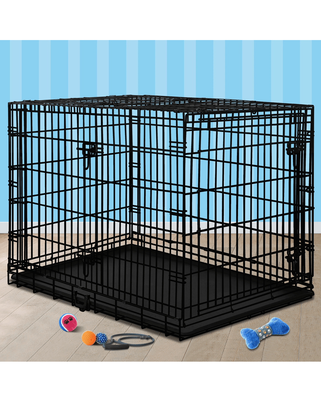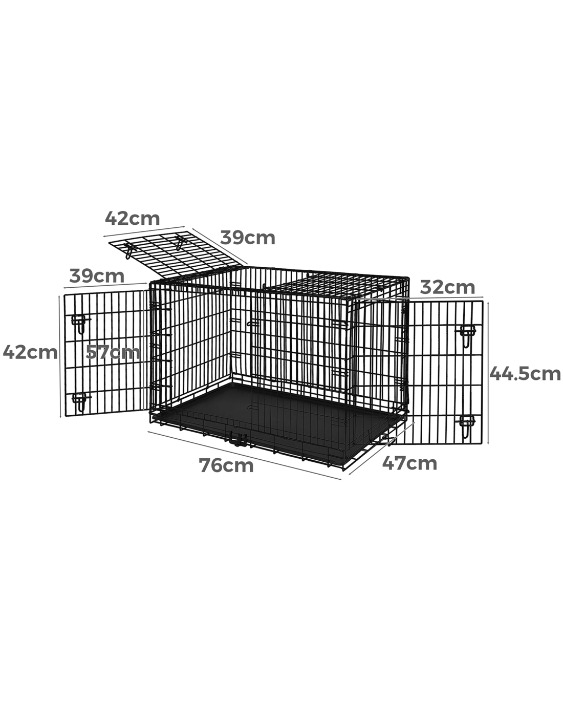 A convenient slide-out tray ensures superior hygiene for your pet. With a detachable carry handle and the foldable design, this crate is portable and enables you to travel with your furry friend more easily.