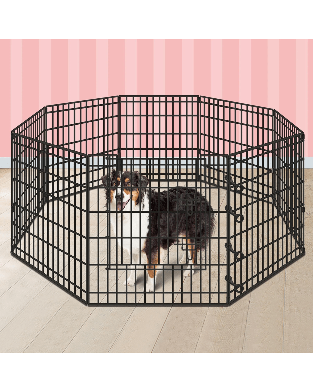 Beastie Dog Playpen Pet Metal Cage Fence 8 Panel Enclosure Puppy Pen 30" - Black